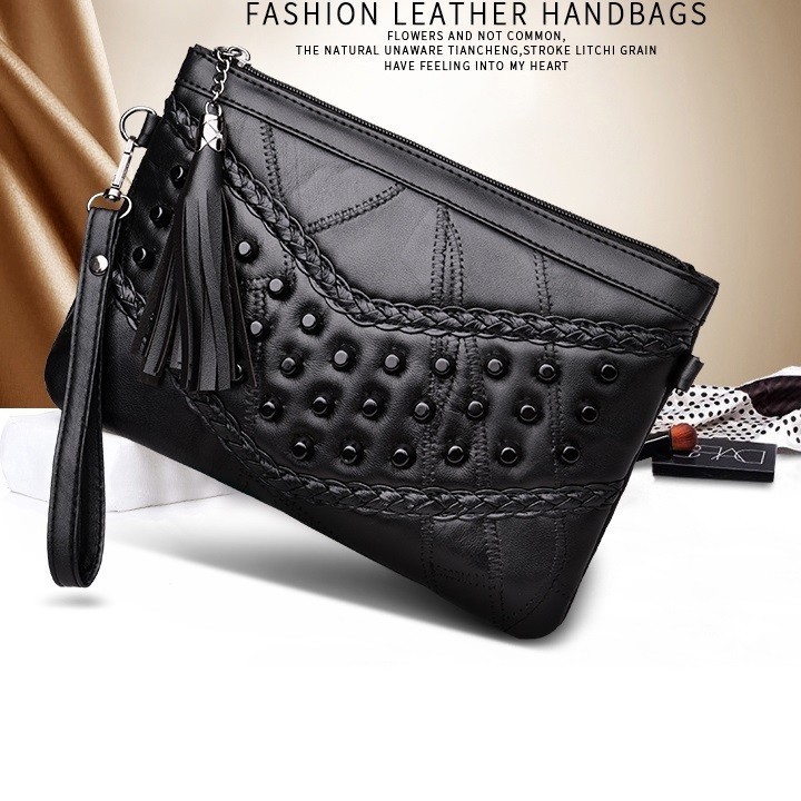 Túi ví cườm cầm tay da có thể đeo vai chất liệu Da mềm mại tiện lợi 25x3x17cm