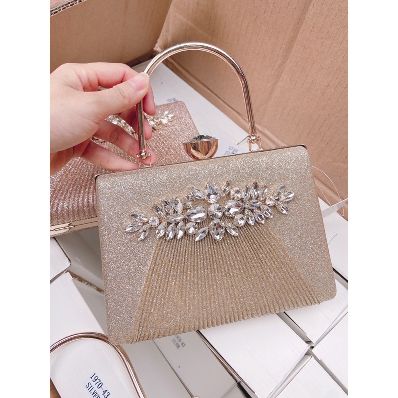 Giới thiệu túi xách cầm tay nhũ đá pha Lê đi tiệc mần xui sang trọng ( ảnh thật shop tự chụp )