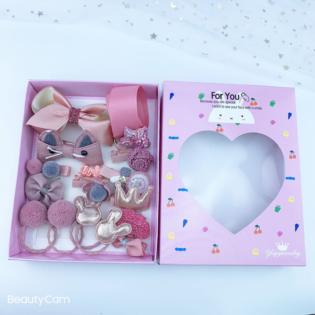 -Hộp phụ kiện nơ kẹp tóc cho bé bao gồm 18 chi tiết với phong cách Hàn Quốc