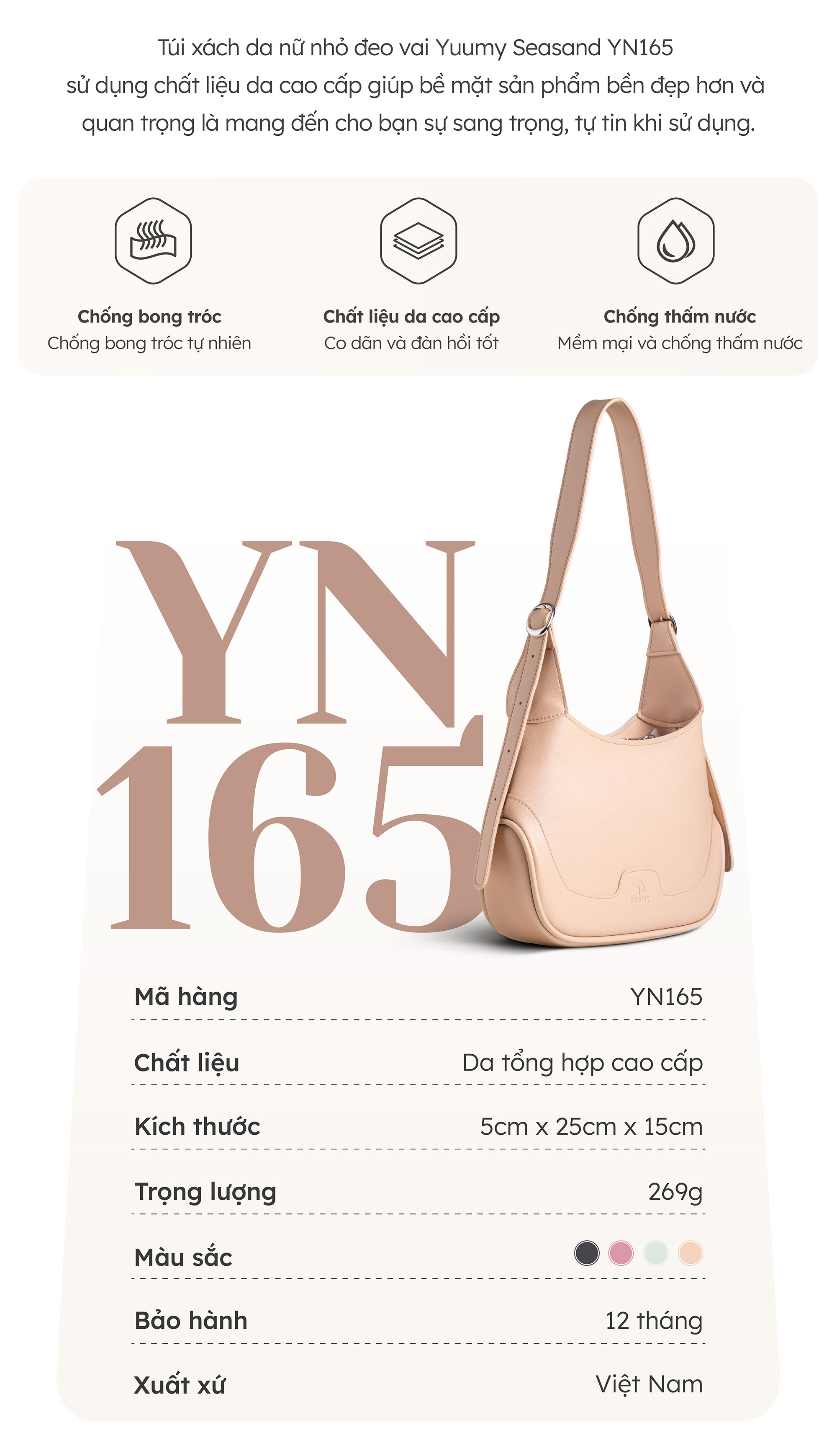 Túi xách da nữ nhỏ đeo vai Yuumy Seasand YN165 sử dụng chất liệu da cao cấp giúp bề mặt túi bền đẹp hơn và quan trọng là mang đến cho bạn sự sang trọng, tự tin khi sử dụng. Kiểu dáng độc đáo và hiện đại kết hợp với các tông màu hiện đại, bắt mắt và logo thương hiệu dập chìm tinh xảo khẳng định đẳng cấp của sản phẩm. Bên trong túi có thể đựng các vật dụng cá nhân như ví mini, điện thoại, son, chìa khóa, Sản phẩm phù hợp với nhiều hoàn cảnh khác nhau như , đi chơi, đi làm, mua sắm, dạo phố…