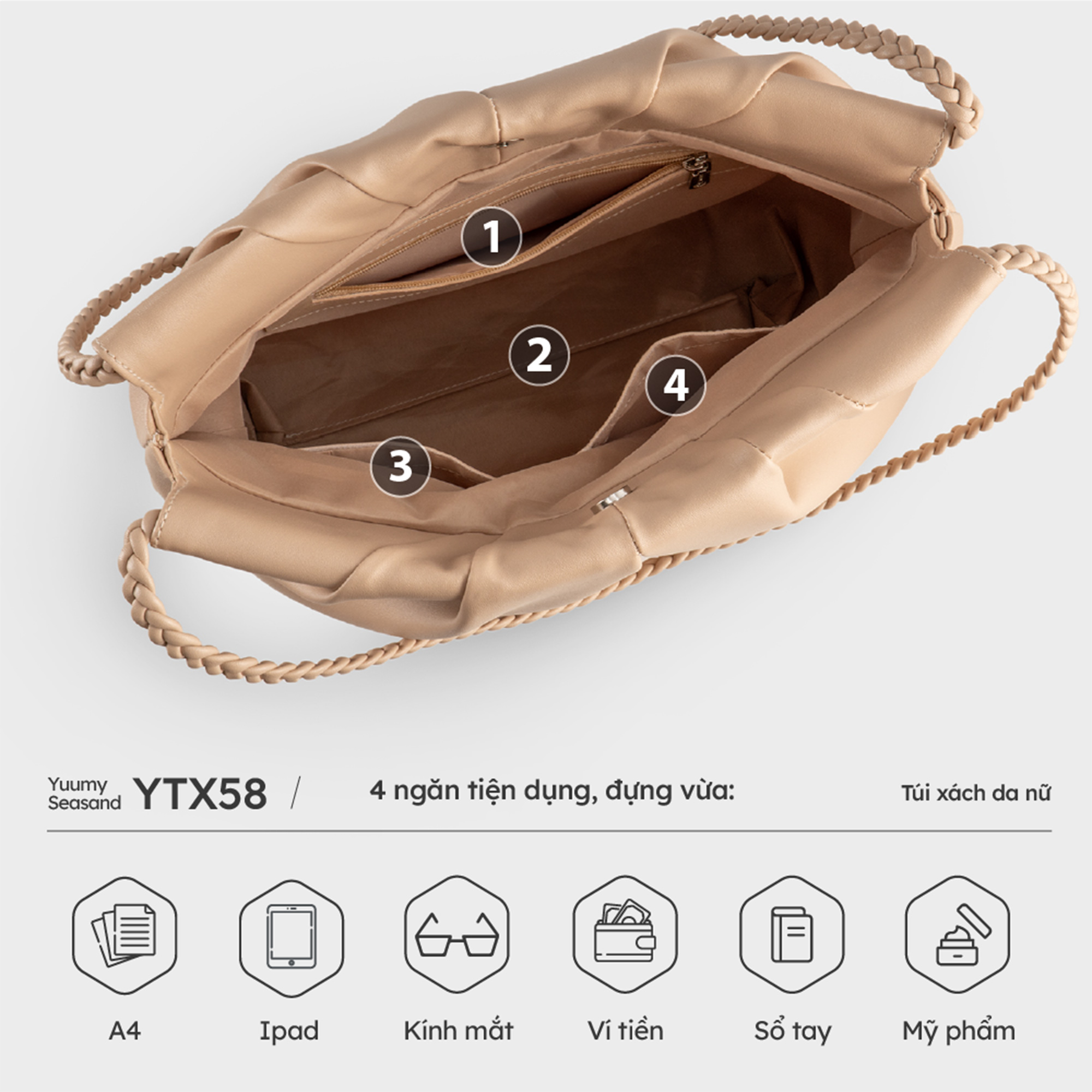 Túi xách da nữ thiết kế nếp nhăn sáng tạo Yuumy Seasand YTX58 là sự kết hợp hoàn hảo giữa phong cách thanh lịch và tiện dụng. Được làm từ chất liệu da tổng hợp cao cấp, túi mang lại cảm giác mềm mịn và độ bền vượt trội, giúp bạn tự tin sử dụng trong nhiều hoàn cảnh. Thiết kế nếp nhăn sáng tạo kết hợp với quai da đan tinh tế tạo nên một vẻ đẹp độc đáo, hiện đại và không kém phần sang trọng. Ngoài vẻ ngoài thu hút, túi có không gian rộng rãi, đủ để những vật dụng cần thiết như tài liệu, điện thoại, ví tiền và các món vật dụng khác. Đây chắc chắn là phụ kiện hoàn hảo để tôn lên phong cách cá nhân của bạn, đồng thời phù hợp với nhiều trang phục khác nhau, từ công sở đến trang phục dạo phố.