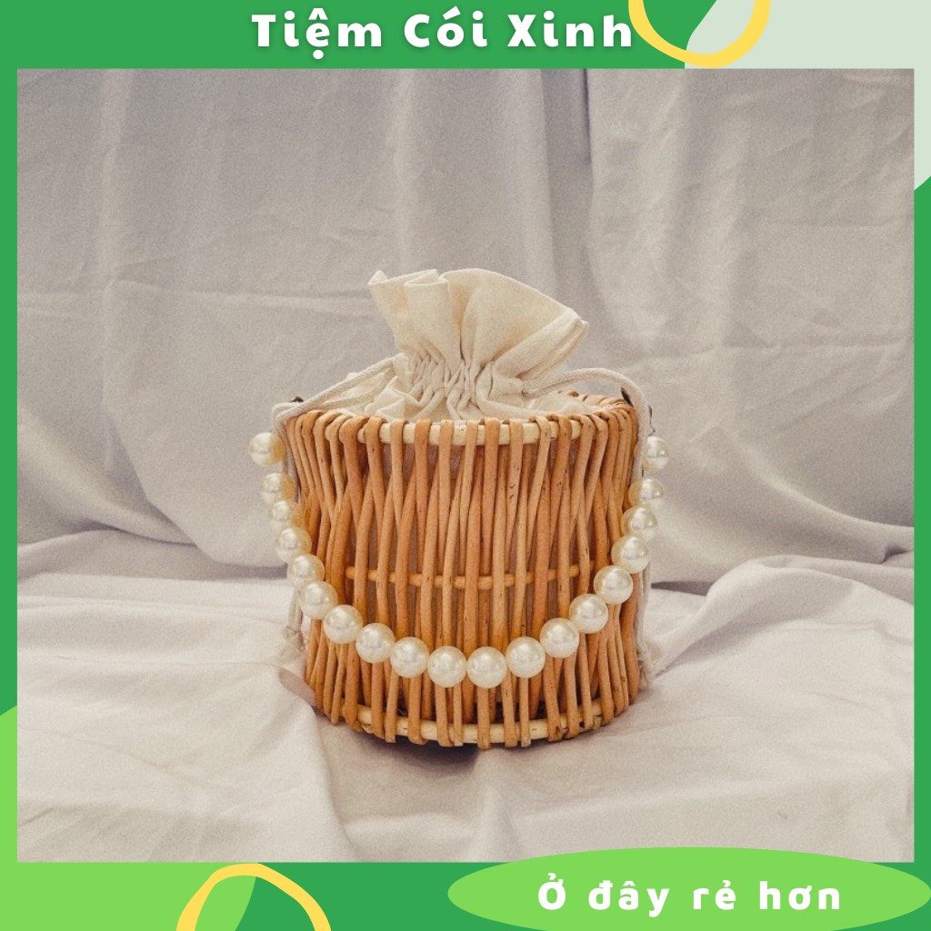 - Giỏ xách quai ngọc đan mây kích thước tuy nhỏ nhưng đựng được khá nhiều đồ dùng: điện thoại, mỹ phẩm, tiền, chìa khóa..... - Túi mây đan có lót lớp vải canvas, miệng túi có dây rút chặt không sợ rơi đồ