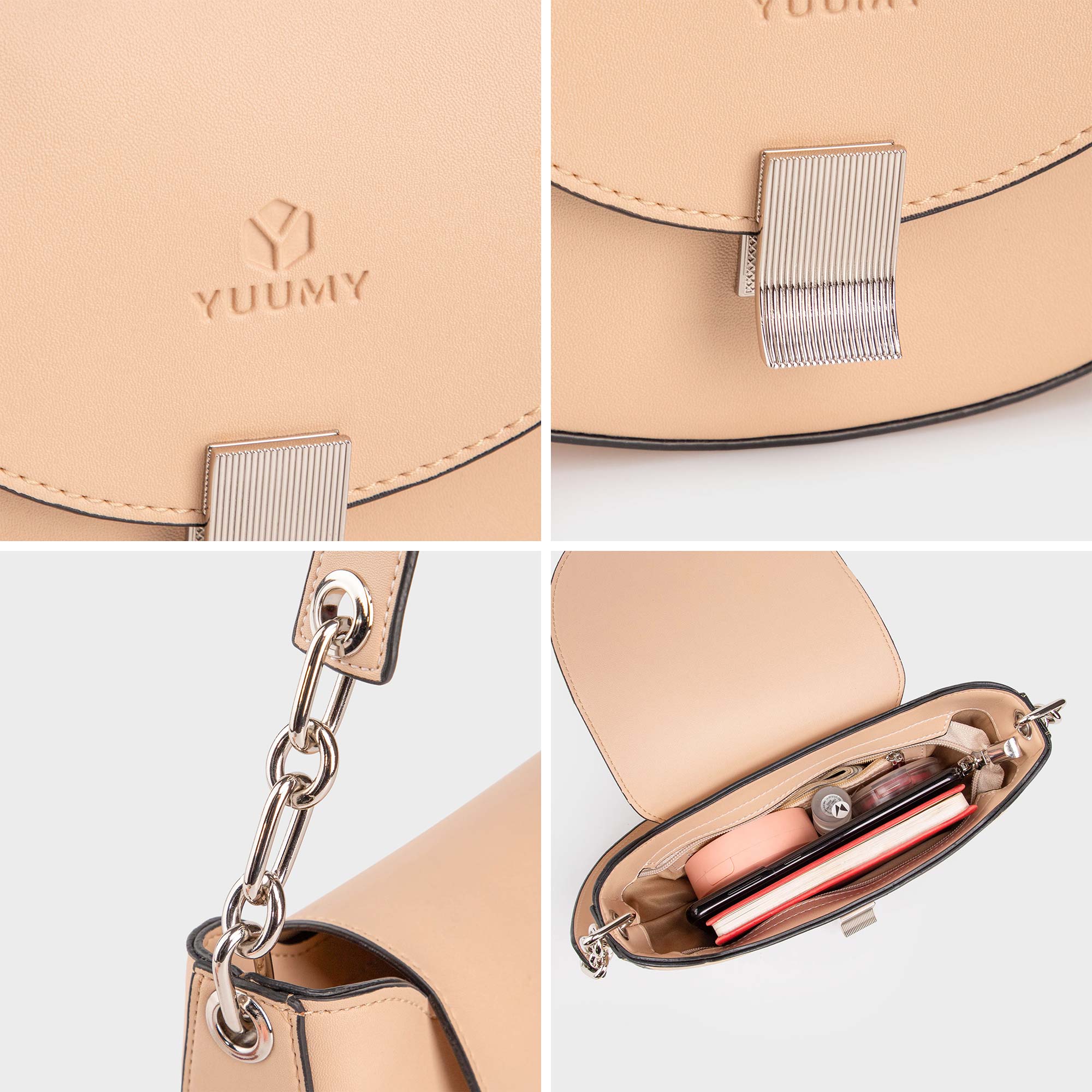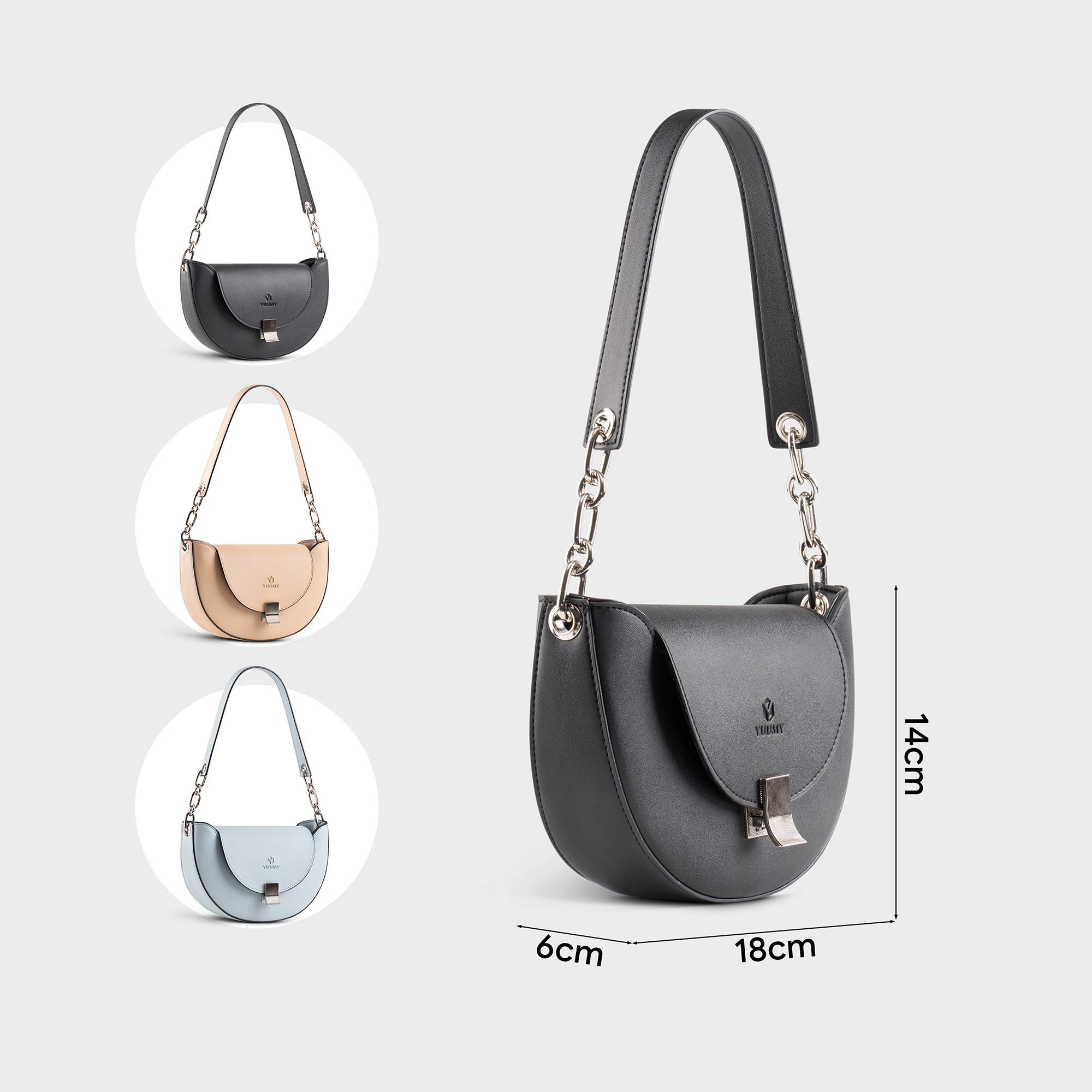 Túi xách đeo vai da nữ Yuumy Seasand YN235 mang thiết kế hình bán nguyệt độc đáo, kết hợp quai phối xích trẻ trung và hiện đại. Chất liệu da tổng hợp giúp dễ dàng vệ sinh và chống trầy xước. Túi có không gian đủ để chứa các vật dụng cần thiết hàng ngày như điện thoại, ví, mỹ phẩm. Màu sắc tinh tế và phong cách tối giản, phù hợp với nhiều trang phục và hoàn cảnh. Yuumy Seasand YN235 là lựa chọn hoàn hảo cho những cô nàng yêu thích sự thanh lịch và năng động.