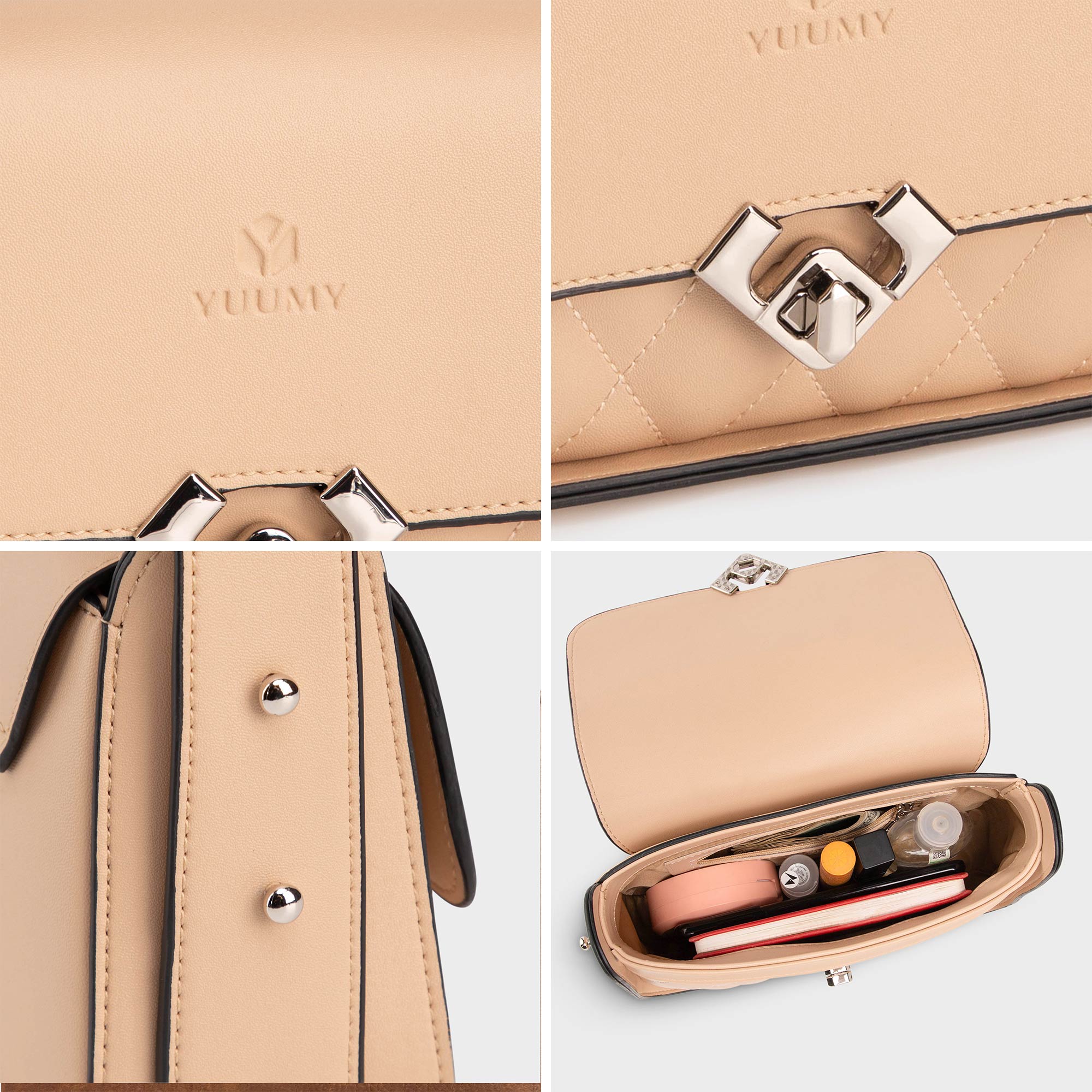 Túi xách đeo vai da nữ hình chữ nhật Yuumy Seasand YN234 được làm từ chất liệu da tổng hợp cao cấp có họa tiết caro với các đường chỉ nổi, tạo điểm nhấn trẻ trung. Túi sử dụng khóa kim loại màu bạc với thiết kế độc đáo, dễ dàng mở và đóng. Dây đeo vai có thể điều chỉnh độ dài ngắn theo sở thích . Các gam màu trung tính tạo cảm giác dịu dàng và dễ phối hợp với nhiều trang phục. Kích thước túi nhỏ gọn, phù hợp để mang theo các vật dụng cá nhân cần thiết như điện thoại, ví tiền, chìa khóa và một số mỹ phẩm, phù hợp vào các dịp đi chơi, dạo phố, đi làm, đi dự tiệc,