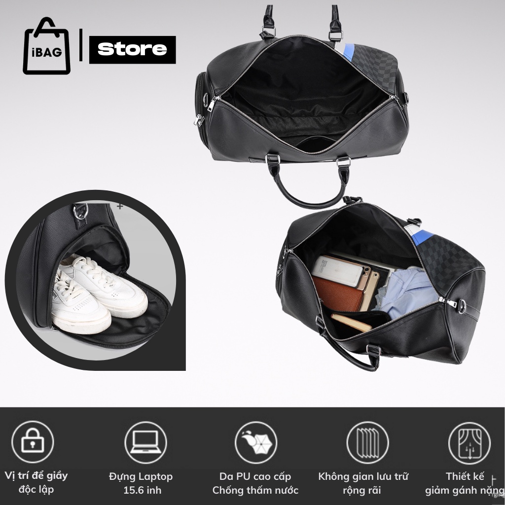 Túi xách du lịch chất liệu da cao cấp, túi trống thể thao chống thấm nước có ngăn để giày riêng biệt- 𝑰𝑩𝑨𝑮