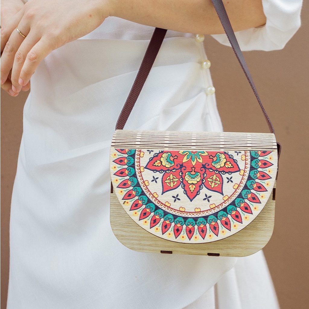 🌲 THÔNG TIN SẢN PHẨM - Xuất xứ: Việt Nam - Chất liệu: + Túi Xách: Gỗ công nghiệp + Dây đeo: Dây da + Họa tiết: Khắc laser, in màu 3D, vải dạ - Kích thước: 15cm x 20cm x 6.5cm
