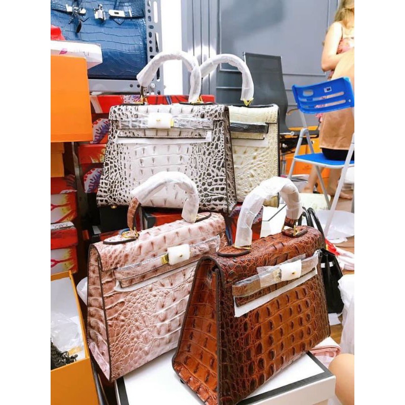 Túi Xách H M K.e.lly da cá sấu SP CHUẨN size 25 tặng kèm khăn