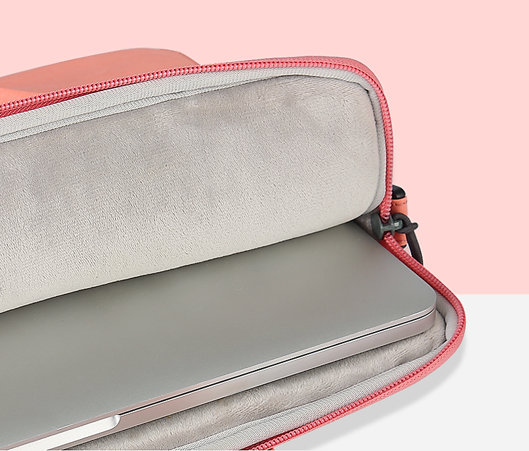 - Lấy ý tưởng từ chất vải kết sợi polyester khả năng chống thấm cao. Chiếc túi được làm bằng vải bông cao cấp kết hợp với vải nhung sợi mềm mịn bên trong giúp bảo vệ laptop một cách tối đa.