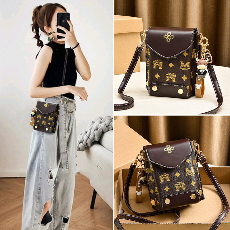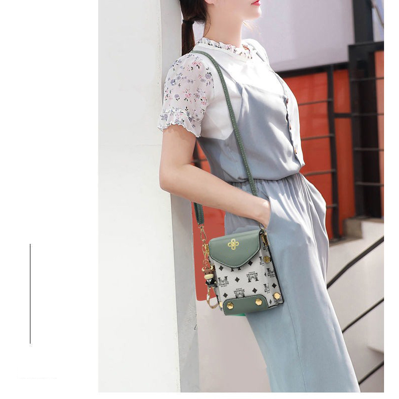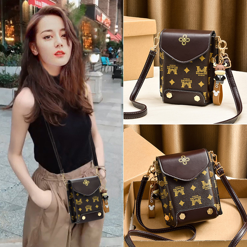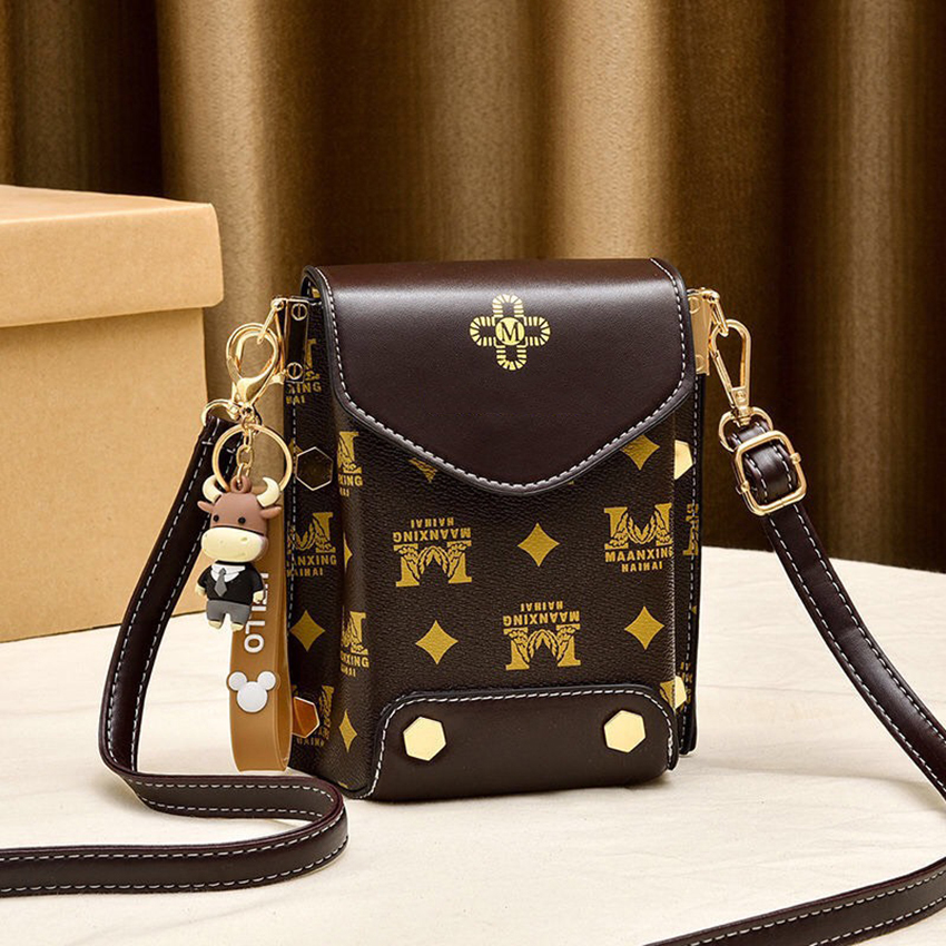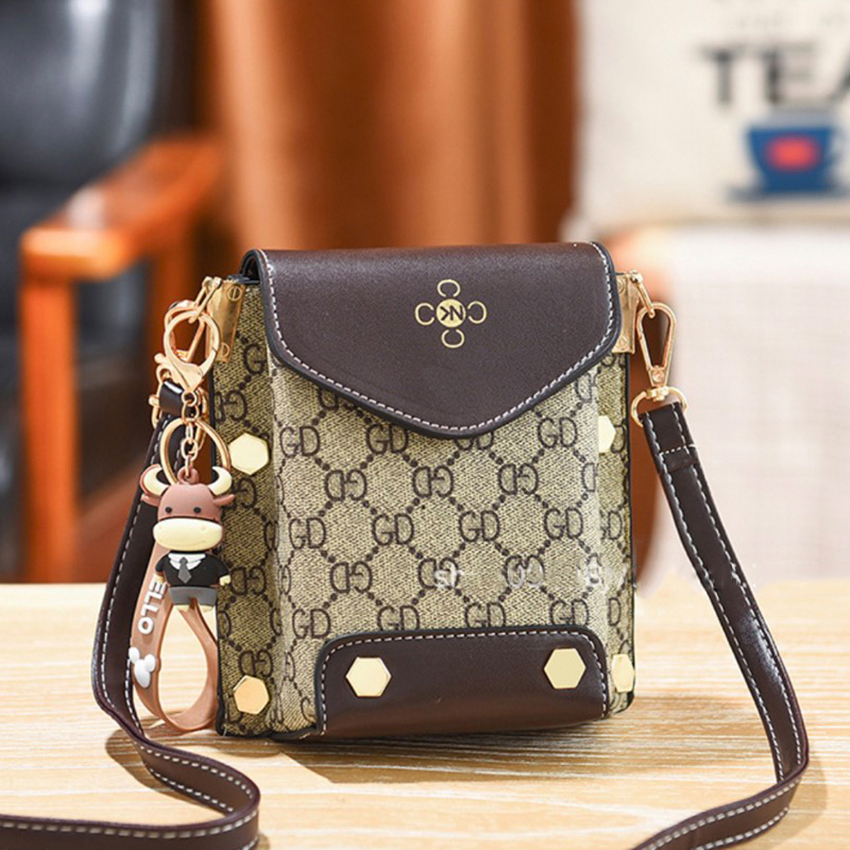 Túi xách nữ đeo chéo đựng điện thoại dáng dọc phối hoa văn nhiều ngăn tiện dụng