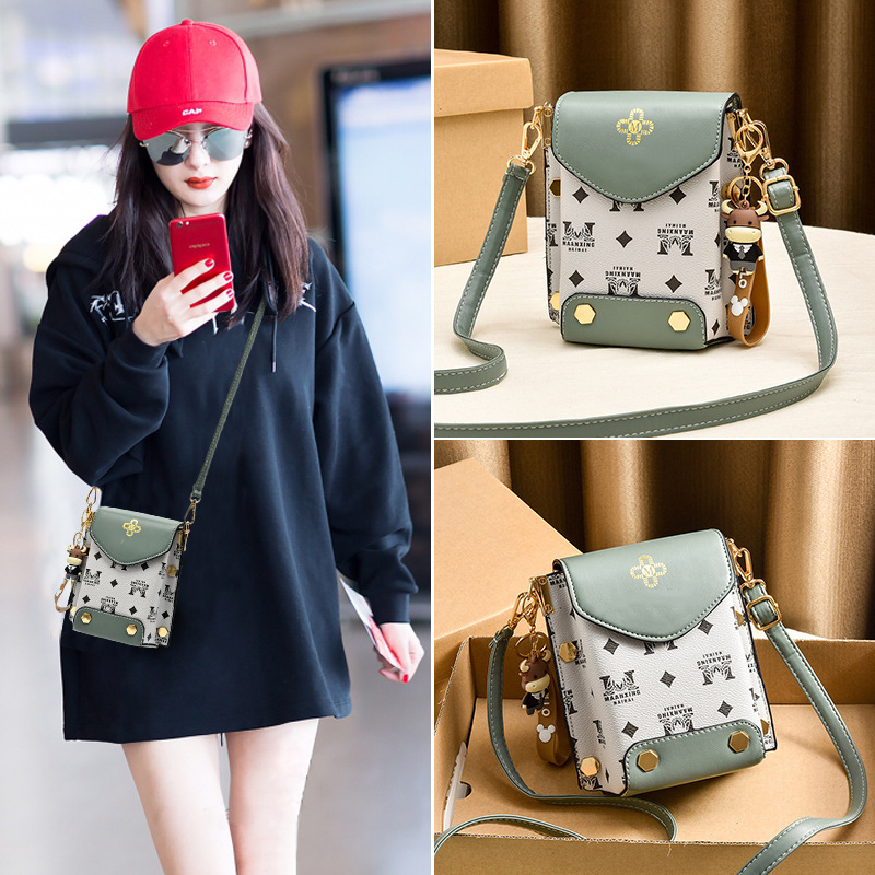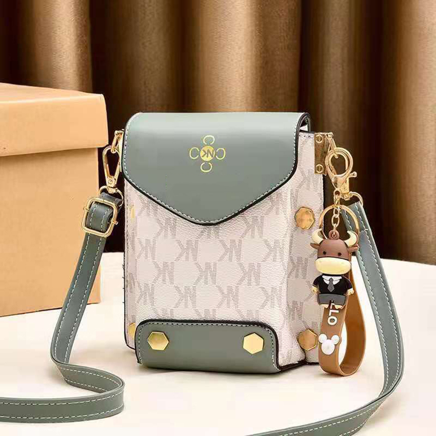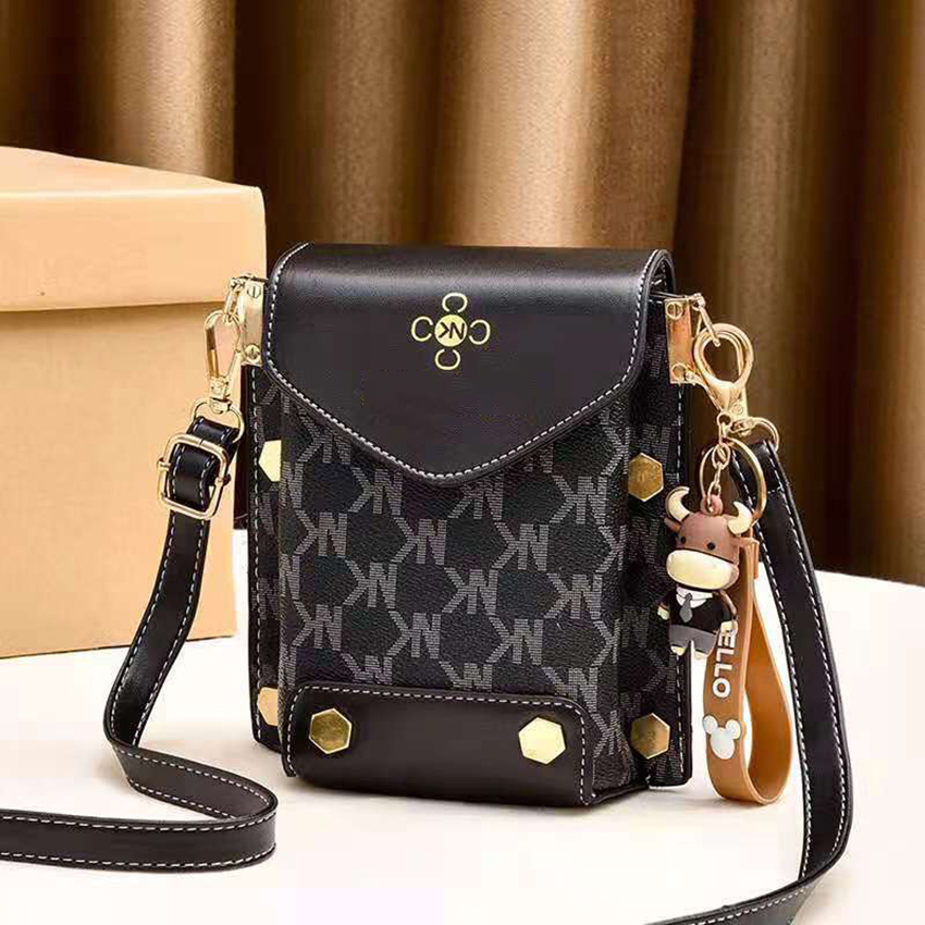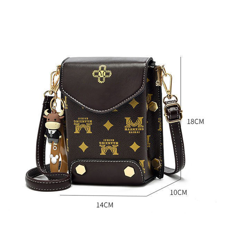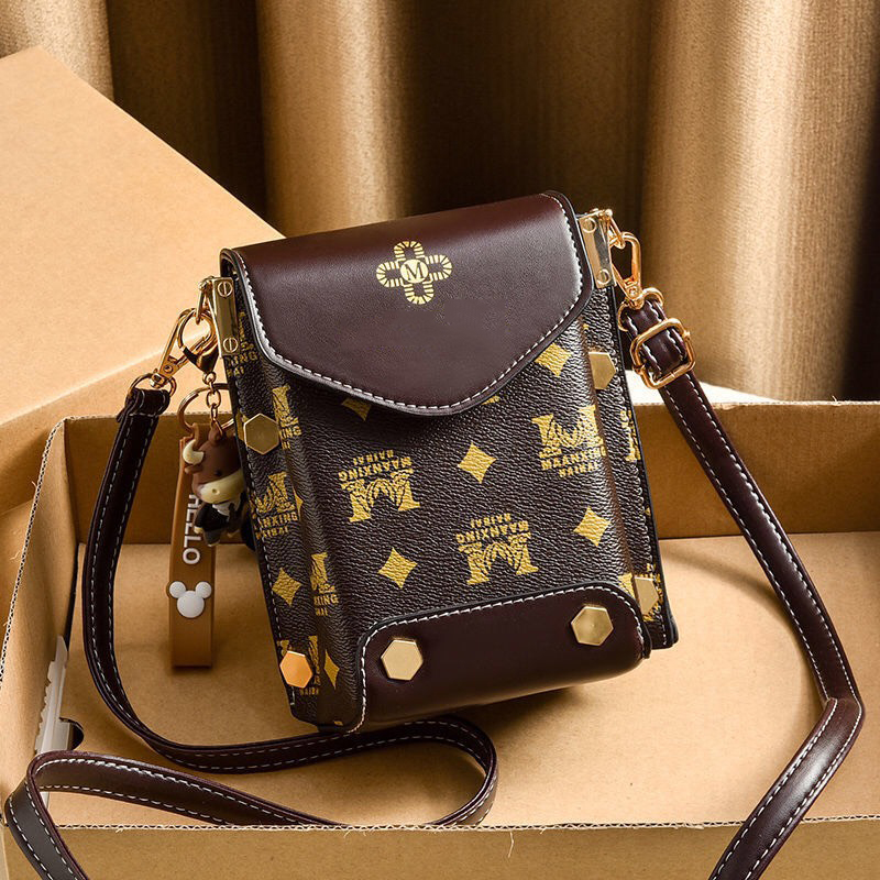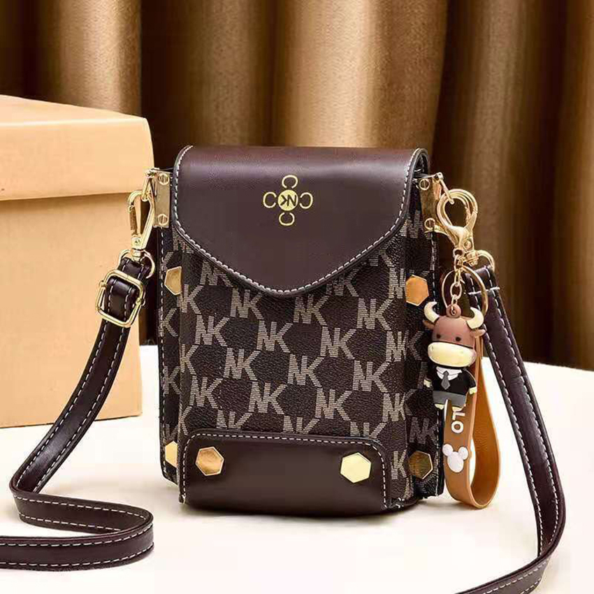 Túi xách nữ đeo chéo đựng điện thoại dáng dọc phối hoa văn nhiều ngăn tiện dụng