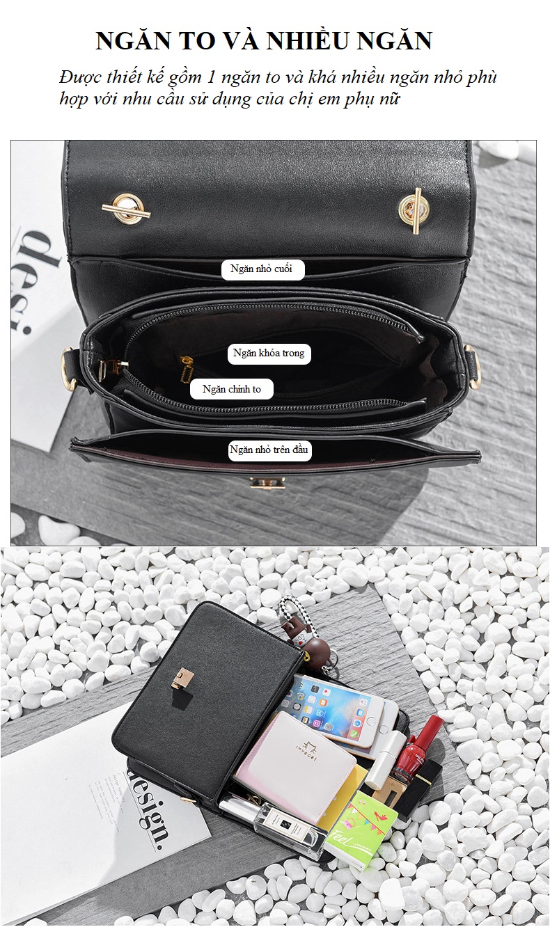 Thiết kế dựa trên nhu cầu sử dụng của chị em phụ nữ nên rất tiện dụng để đựng những đồ cá nhân cho các chuyến đi như ví, điện thoại, sạc cáp, kính,…