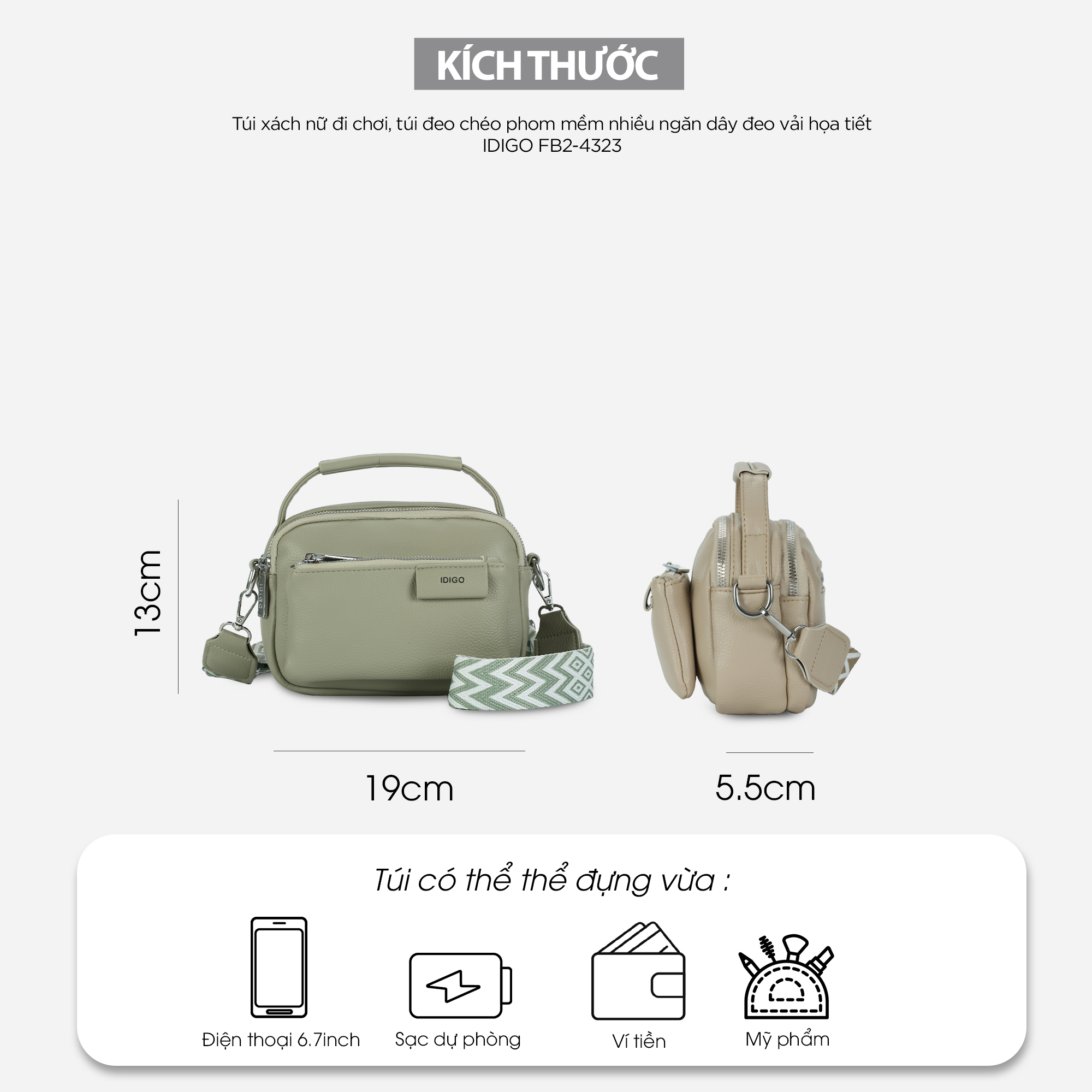 Giới thiệu Túi xách nữ đi chơi, túi đeo chéo phom mềm nhiều ngăn dây đeo vải họa tiết IDIGO FB2 - 4323