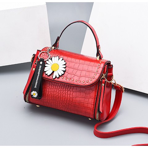 Mô Tả Chi Tiết Túi Xách Quảng Châu Mẫu Mới Hoa Cúc Xinh Xắn 22cm: - Màu Sắc: màu đen, màu xanh dương, màu đỏ, màu xanh lá, màu hồng - Kích Thước: 22x11x16 cm (dài, rộng, cao) - Chất Liệu: Da Cao Cấp, mềm mại. - Túi xách gồm rất nhiều ngăn 2 ngăn chính rộng rãi, 1 ngăn khóa giữa, 1 ngăn khóa cạnh bên và ngăn nhỏ cạnh bên kia đủ để chị em đựng cả thế giới. - Ứng dụng: mang túi đi chơi, mang túi đi du lịch, đi làm, dự tiệc...
