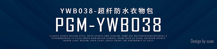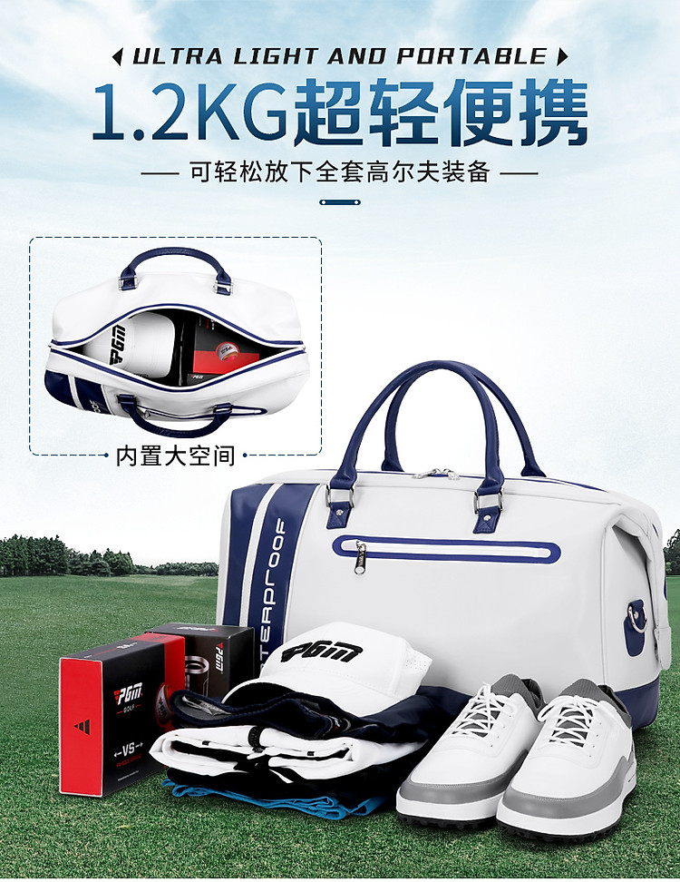 - Túi đựng đồ Golf YWB038 là mẫu túi golf da nhẹ nhất từ trước đến nay của PGM. Túi có khả năng chống nước tốt và ngăn đựng giày riêng.