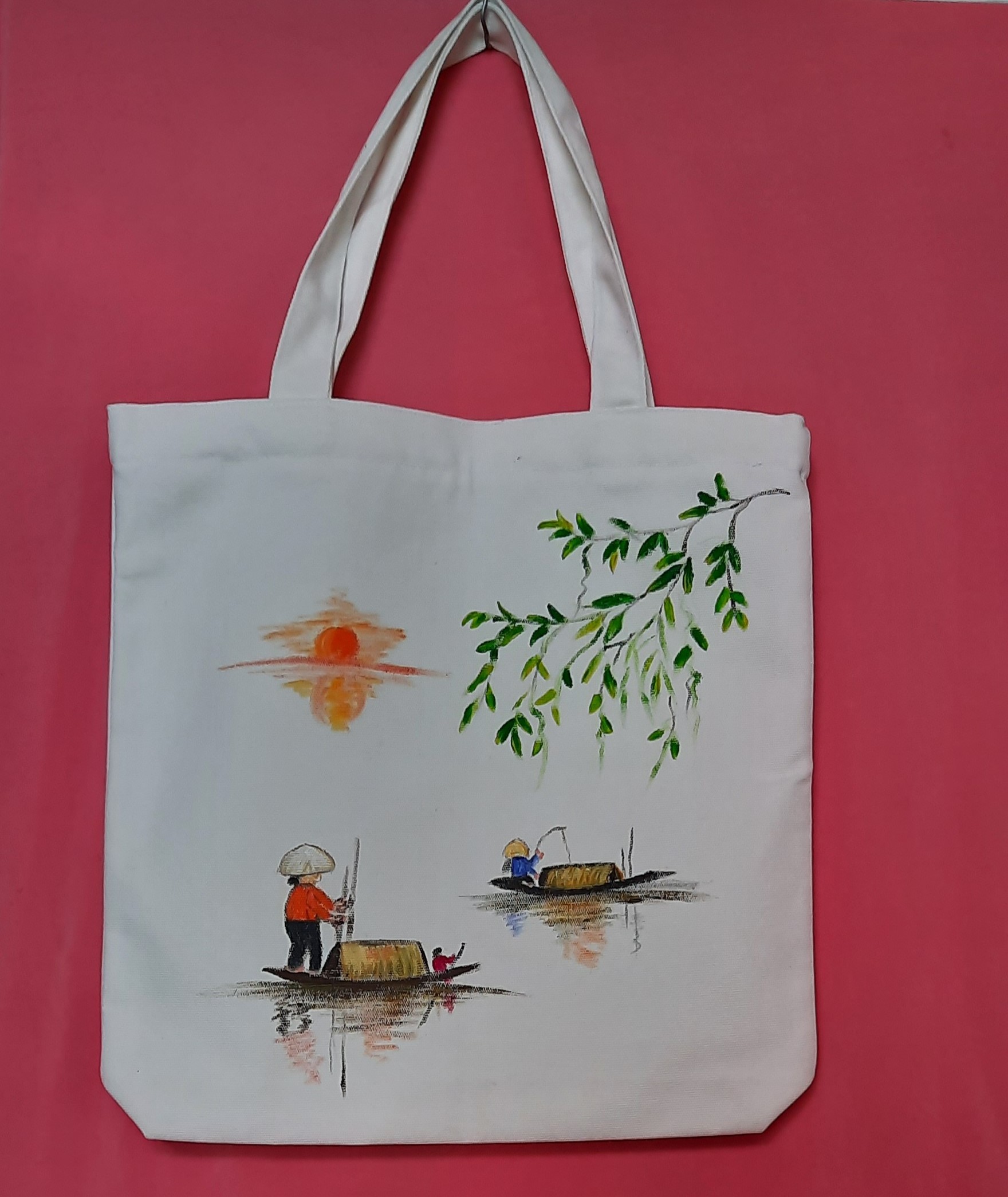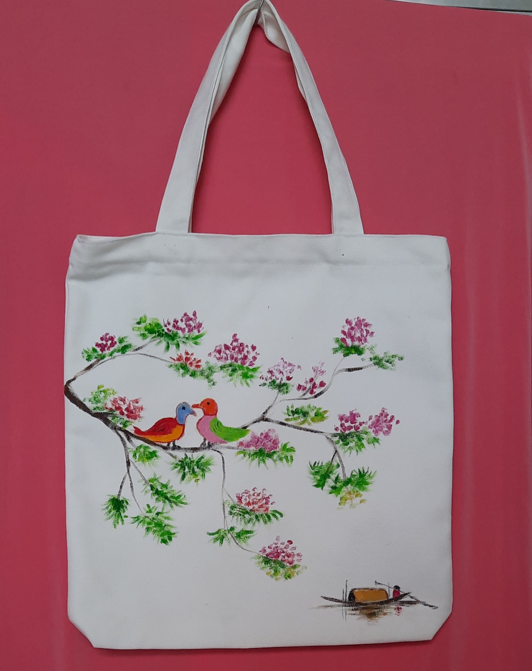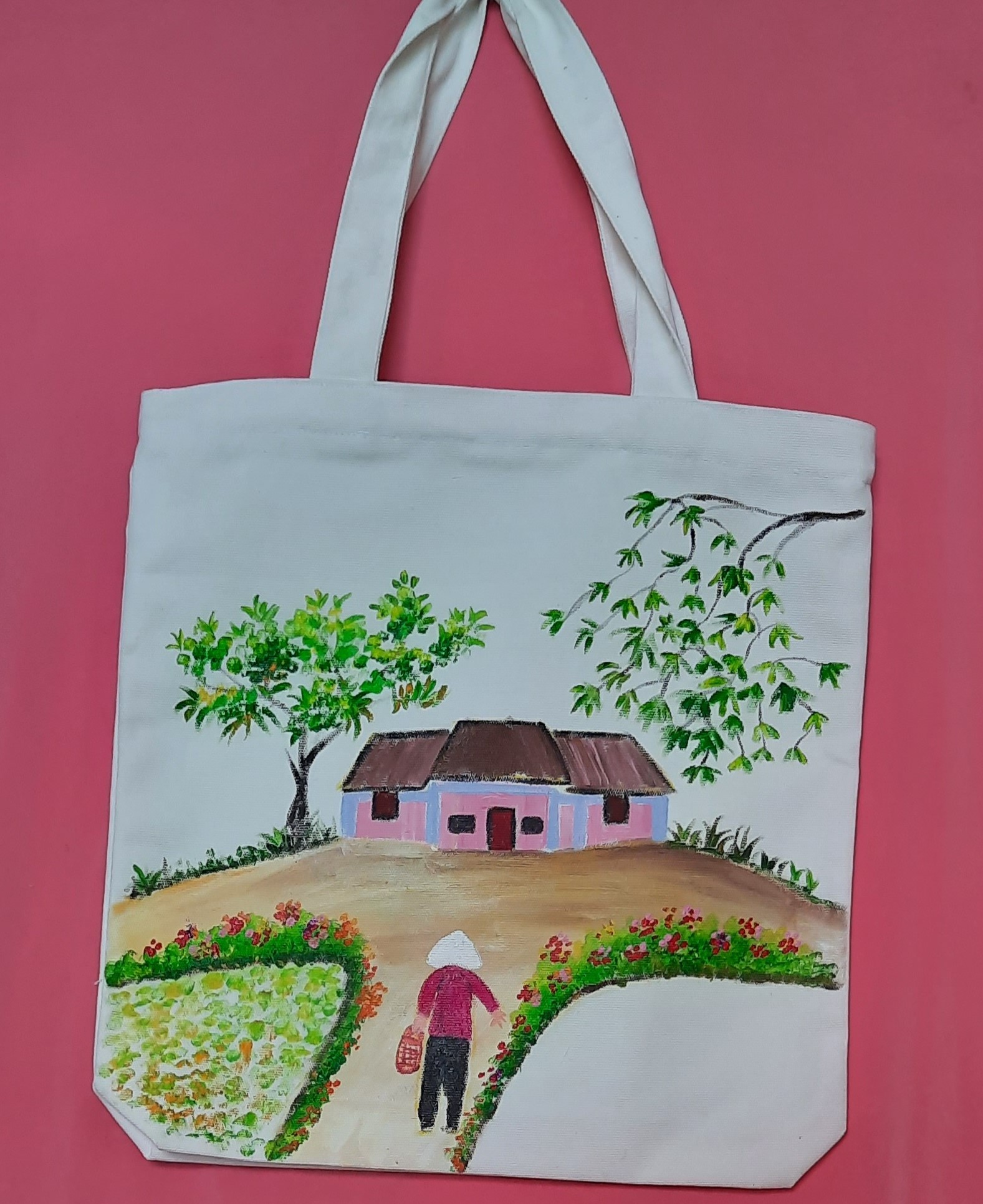 Túi được vẽ tranh theo chủ đề về MẸ, về HOA, về TRANH CẢNH đồng quê xanh mát.