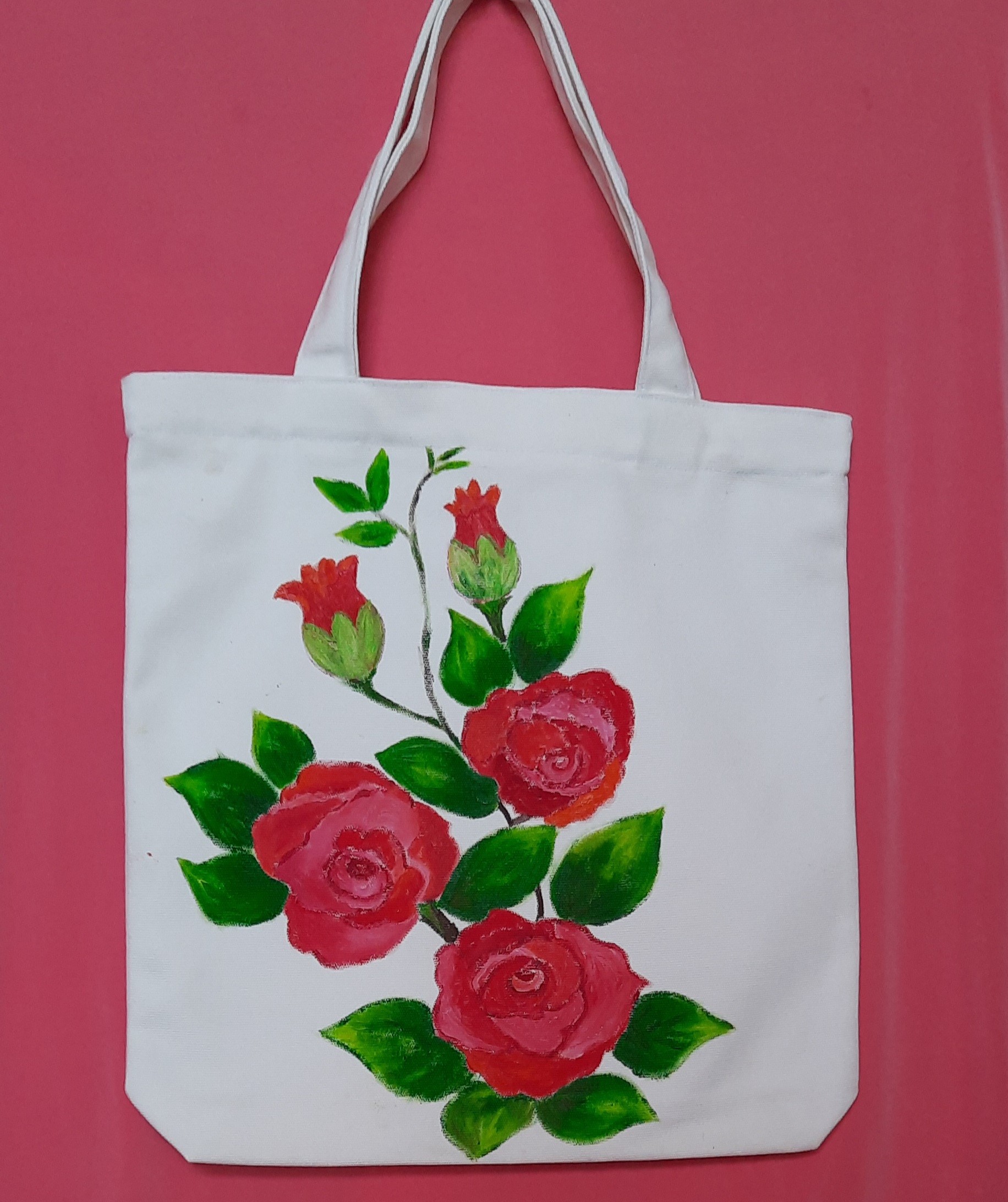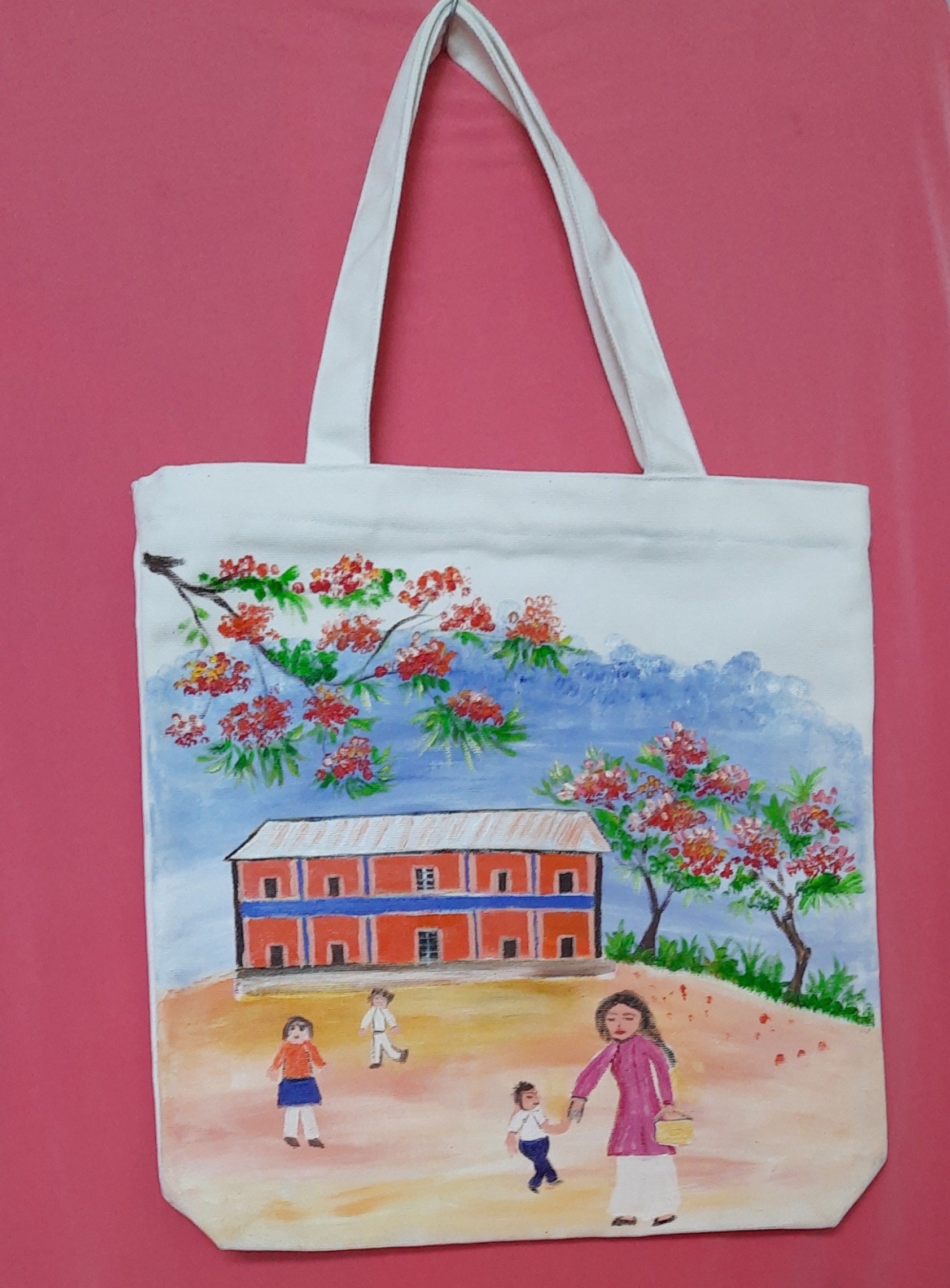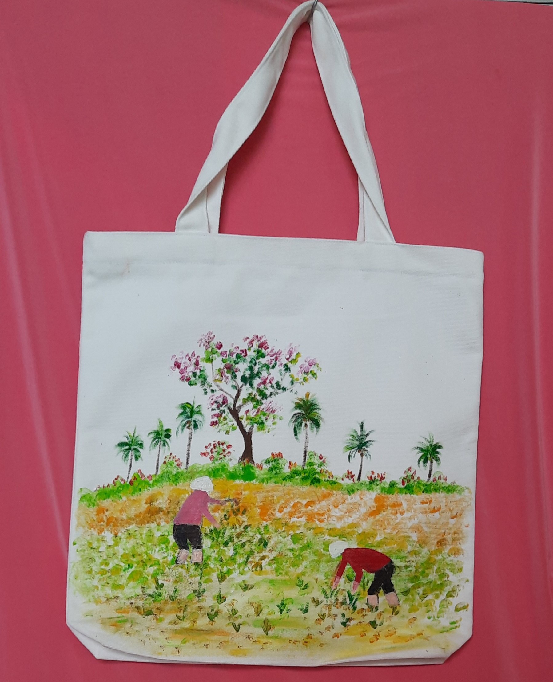 Túi được vẽ tranh theo chủ đề về MẸ, về HOA, về TRANH CẢNH đồng quê xanh mát.