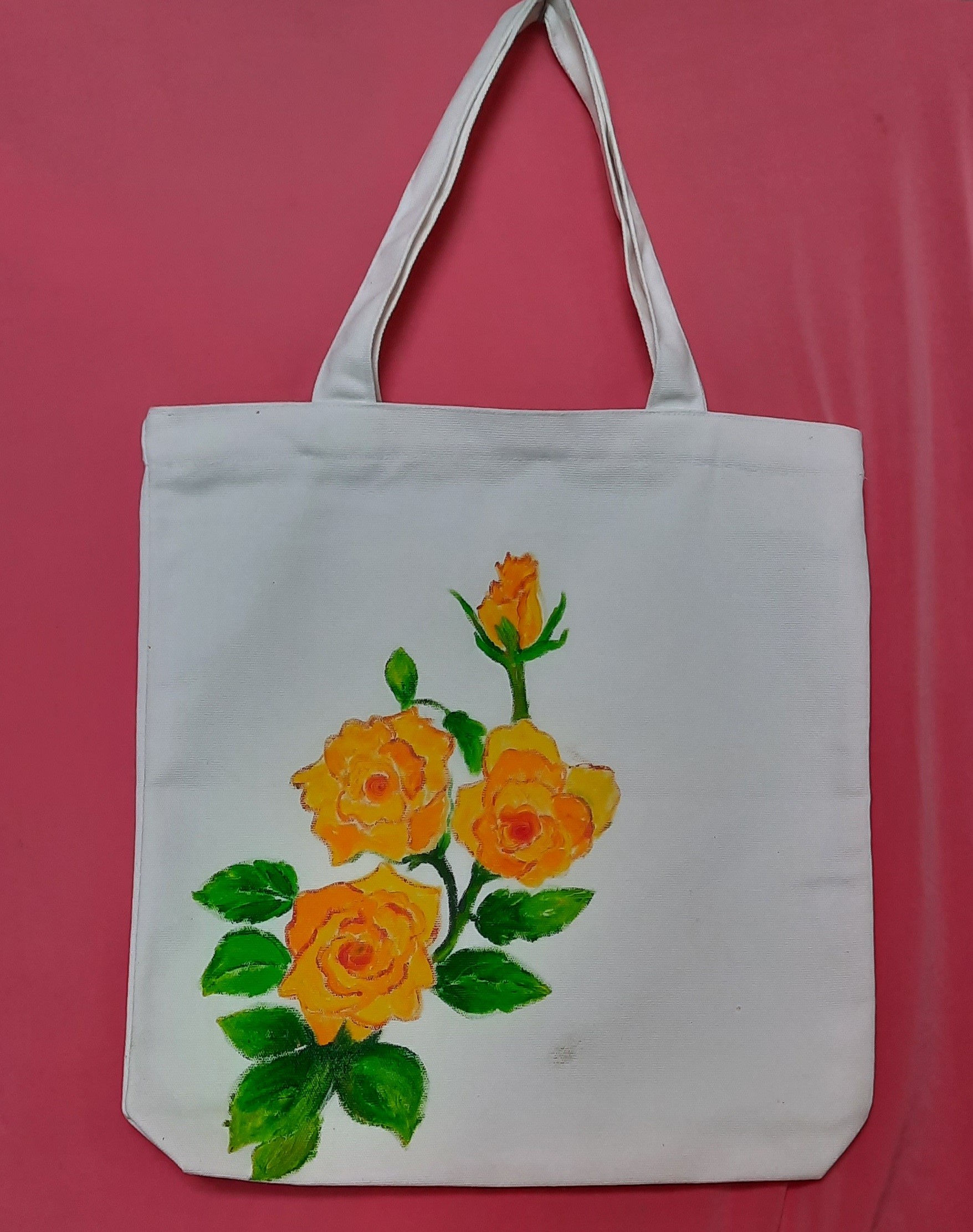 Túi xách vải bố, vẽ bằng chân, màu Acrylic, kích thước 37x38cm đựng đồ thoải mái khi ra ngoài. Túi được vẽ tranh theo chủ đề về MẸ, về HOA, về TRANH CẢNH đồng quê xanh mát. (giao mẫu ngẫu nhiên)