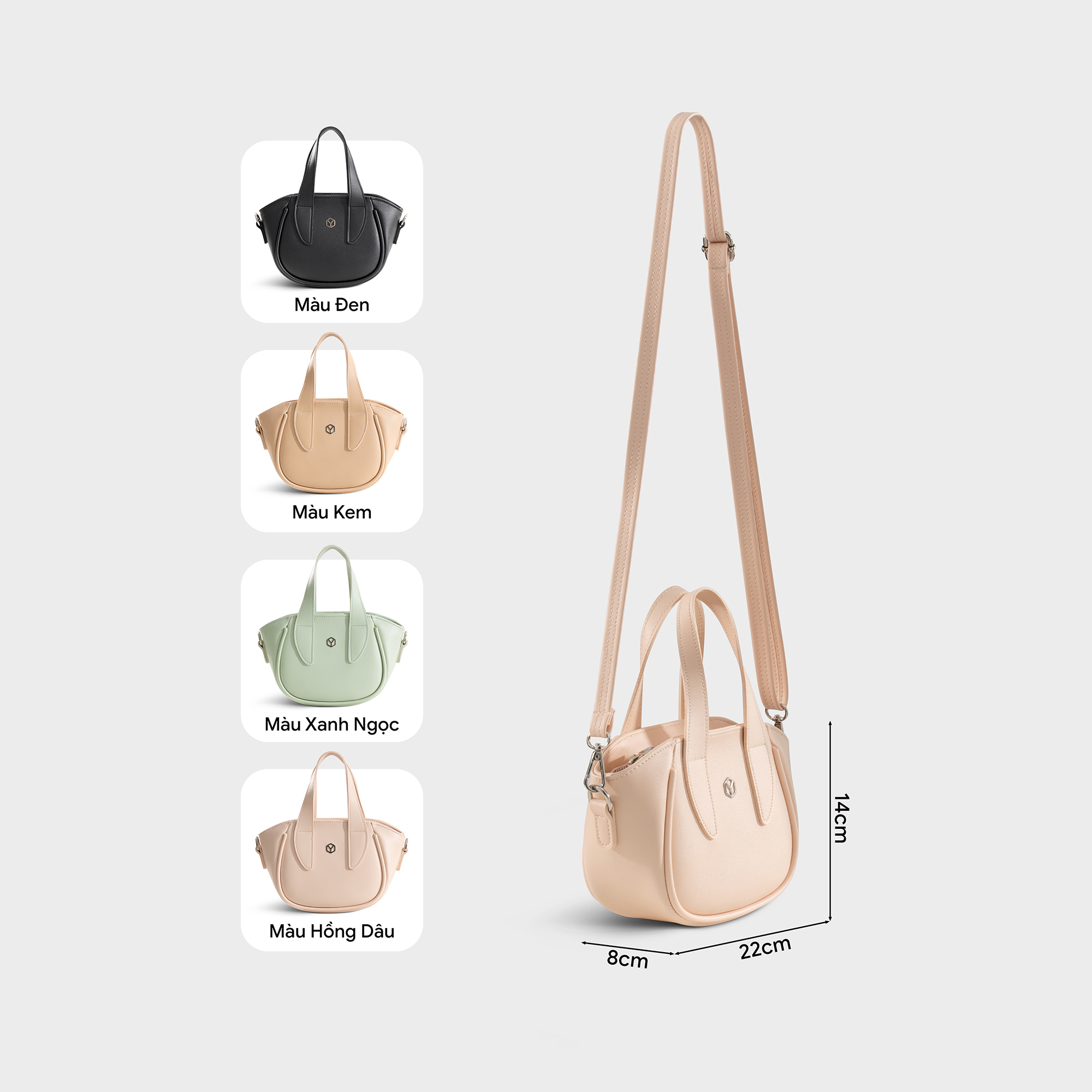 - Kích thước: Dài 22cm, Rộng 8cm, Cao 14cm (Chiều dài đáy túi: 16cm)
