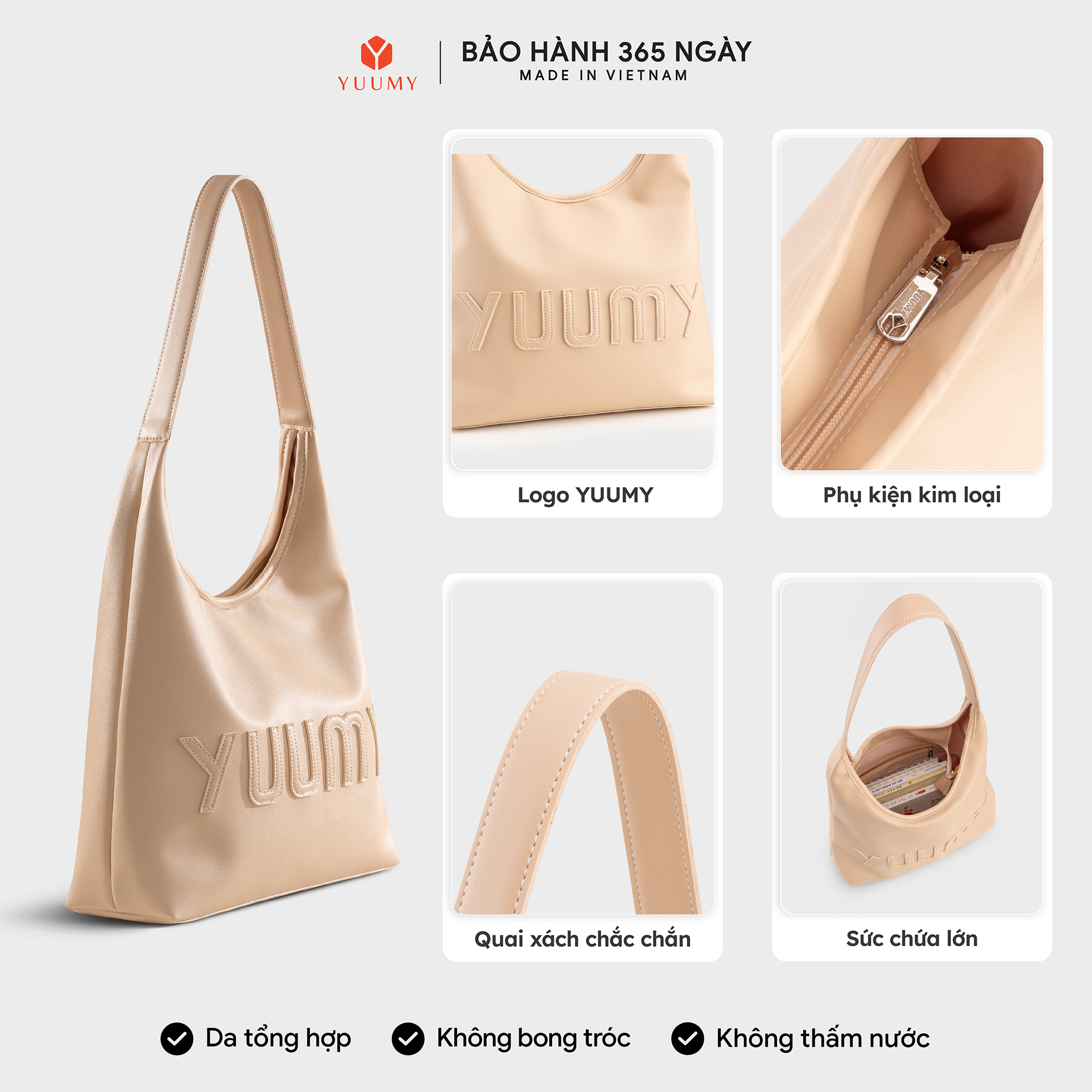 Túi xách da Yuumy Seasand YTX70 mang phong cách tối giản hiện đại. Thiết kế quai xách chắc chắn với đường chỉ may tỉ mỉ, tạo cảm giác thoải mái khi mang. Điểm nhấn nổi bật là dòng chữ “YUUMY” được thêu nổi tinh tế phía trước, vừa thể hiện phong cách thời trang, vừa tạo dấu ấn riêng biệt. Với kích thước túi vừa phải, túi thích hợp để đựng các vật dụng cá nhân như điện thoại, ví, mỹ phẩm,.. Cùng chất liệu da cao cấp bền đẹp, chống thấm nhẹ và giữ form tốt, giúp bạn tự tin sử dụng hàng ngày. Túi dễ dàng phối hợp với nhiều loại trang phục từ công sở đến dạo phố. YTX70 lý tưởng dành cho phái đẹp yêu thích sự tối giản nhưng vẫn muốn thể hiện gu thẩm mỹ riêng.
