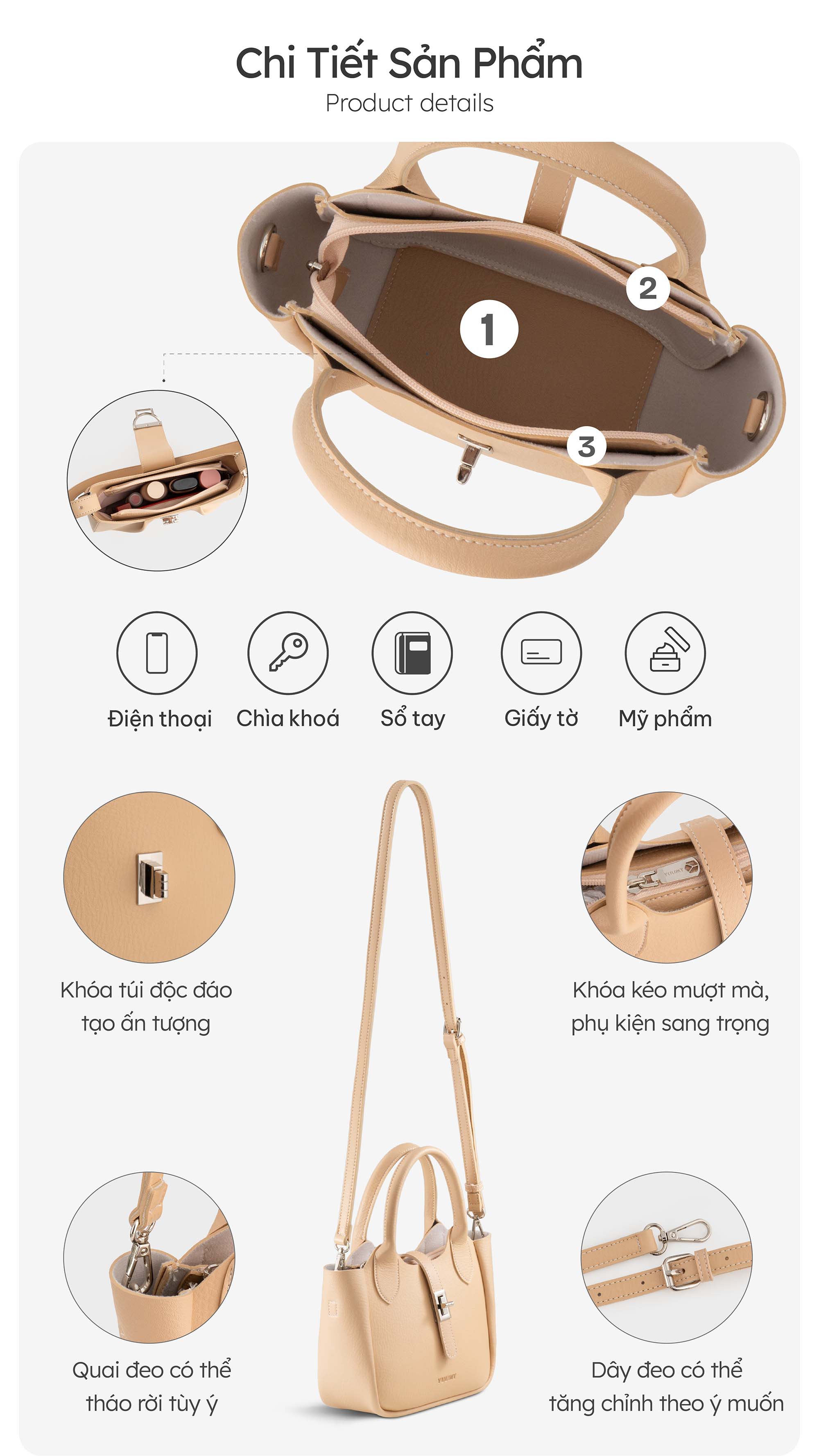 - Công dụng: Đựng ví tiền, điện thoại, son, phấn, chìa khóa, CCCD …