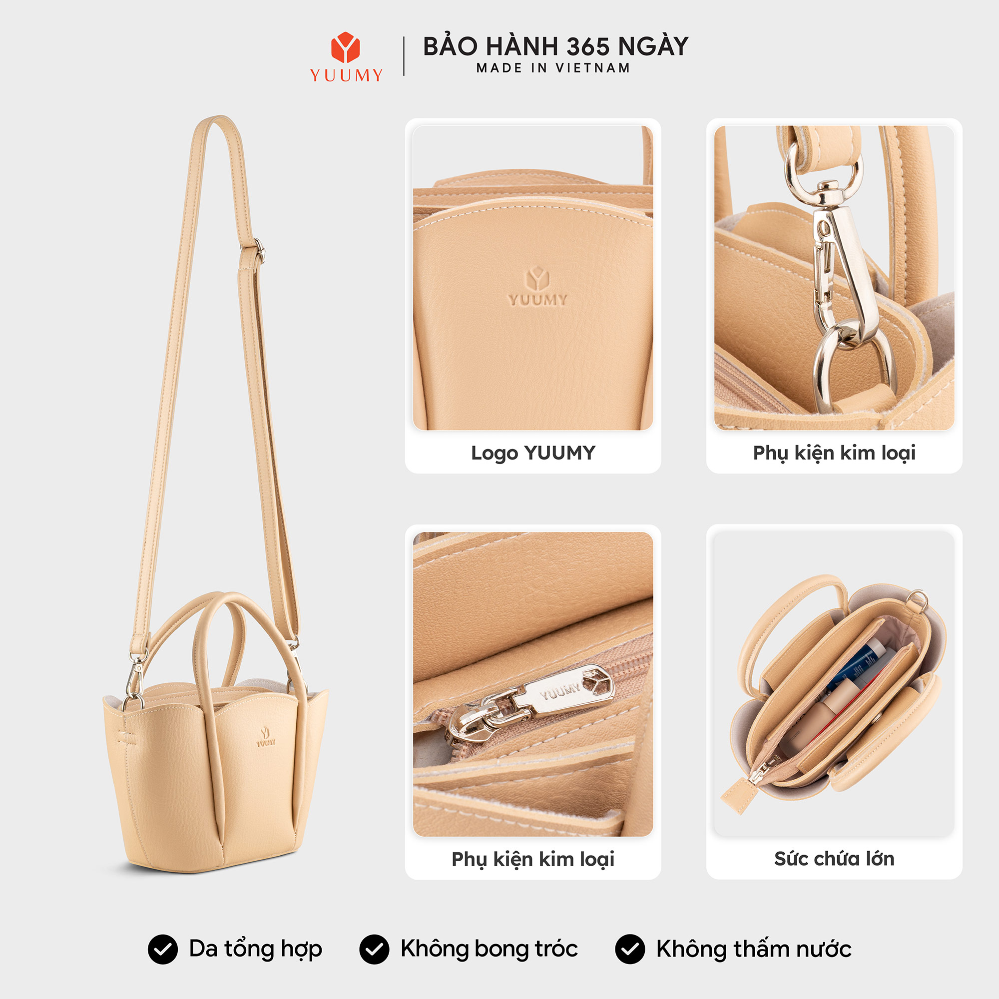 Túi đeo chéo Yuumy YN310 sở hữu thiết kế dáng hộp bo cong mềm mại, nhỏ gọn nhưng vẫn sang trọng. Chất liệu da tổng hợp cao cấp cùng đường may chắc chắn giúp túi giữ form bền đẹp. Với sức chứa vừa đủ cho điện thoại, ví mini, son môi và các vật dụng cần thiết, túi mang lại sự tiện lợi. Thiết kế quai xách và dây đeo chéo tháo rời giúp nàng linh hoạt biến hóa phong cách: xách tay thanh lịch, đeo chéo năng động. Phù hợp đi làm, dạo phố, hẹn hò hay dự tiệc nhẹ, đây là lựa chọn hoàn hảo cho nàng yêu thích sự tinh tế và tiện dụng.