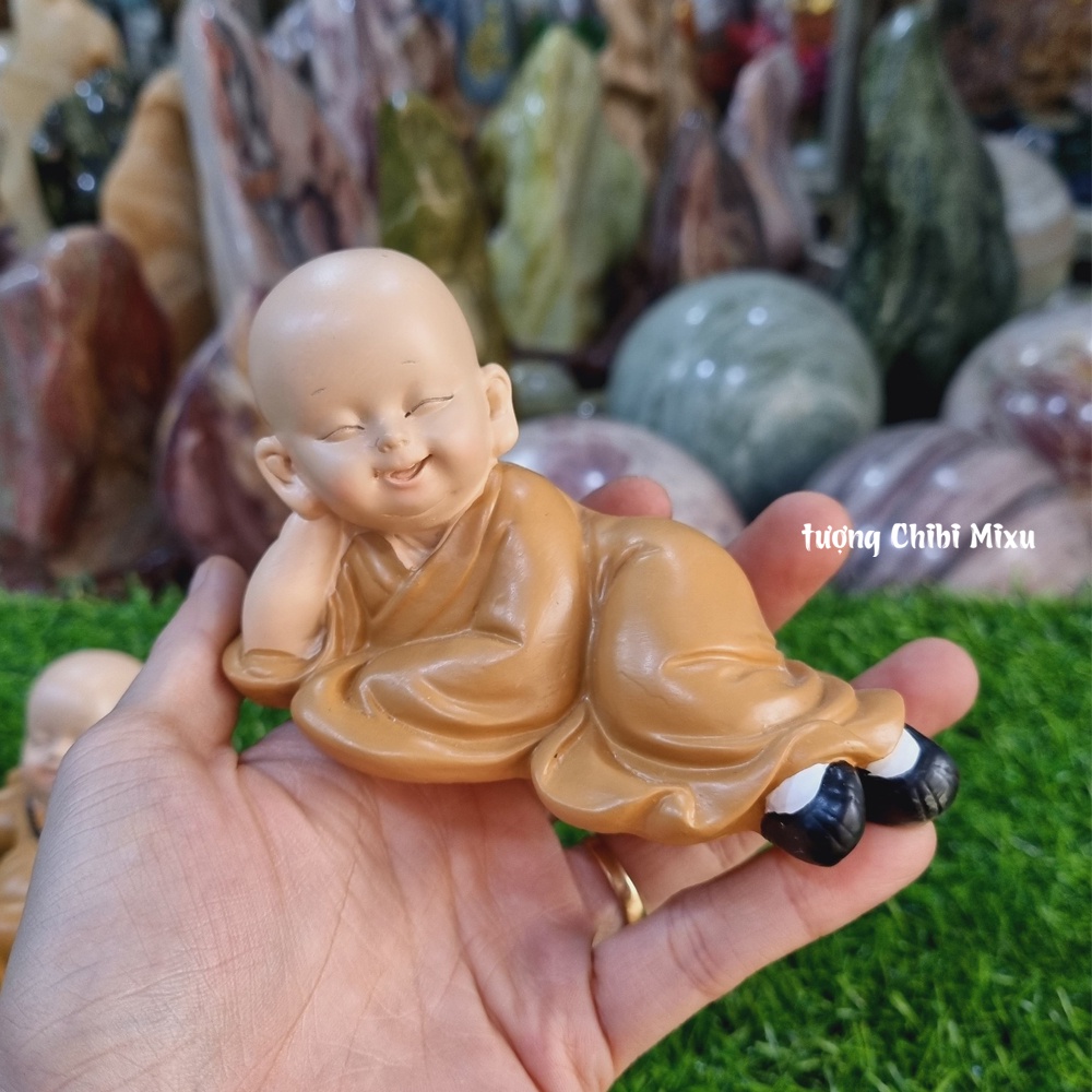 Tượng chú tiểu an nhiên áo nâu - mẫu nằm