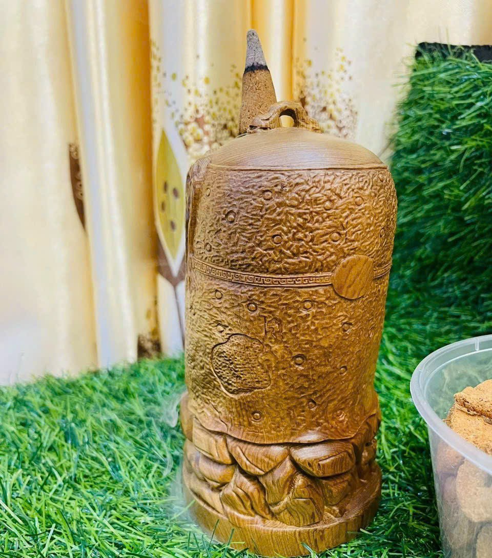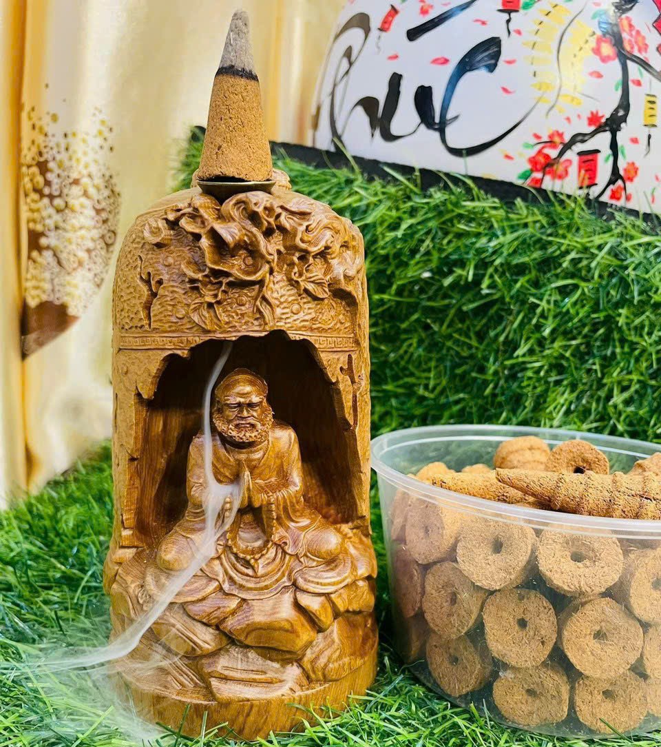 _ Tượng chuông khắc đạt ma sư tổ được làm bằng chất liệu gỗ bách xanh liền khối tự nhiên 100%