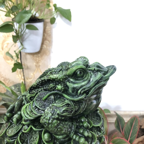 + 01 Tượng đá Cóc Thiềm Thừ 3 chân phong thủy chiêu giữ tài lộc - Màu xanh lục bích - Cỡ lớn cao 20cm