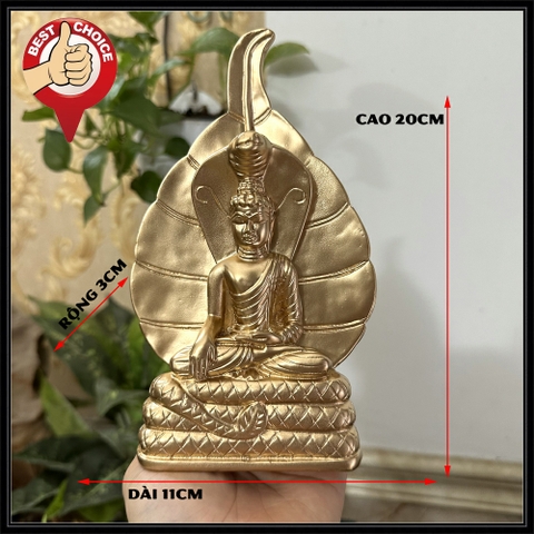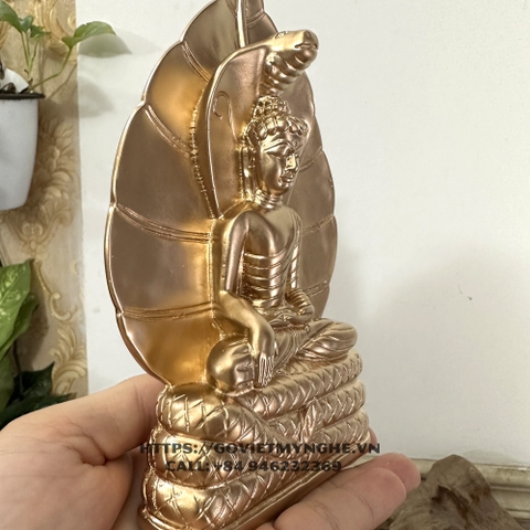 | Model | Tượng đá trang trí phòng thờ tượng Đức Phật Thích Ca ngồi thiền định trong tòa rắn Naga - Màu nhũ đồng - Cao 20cm |