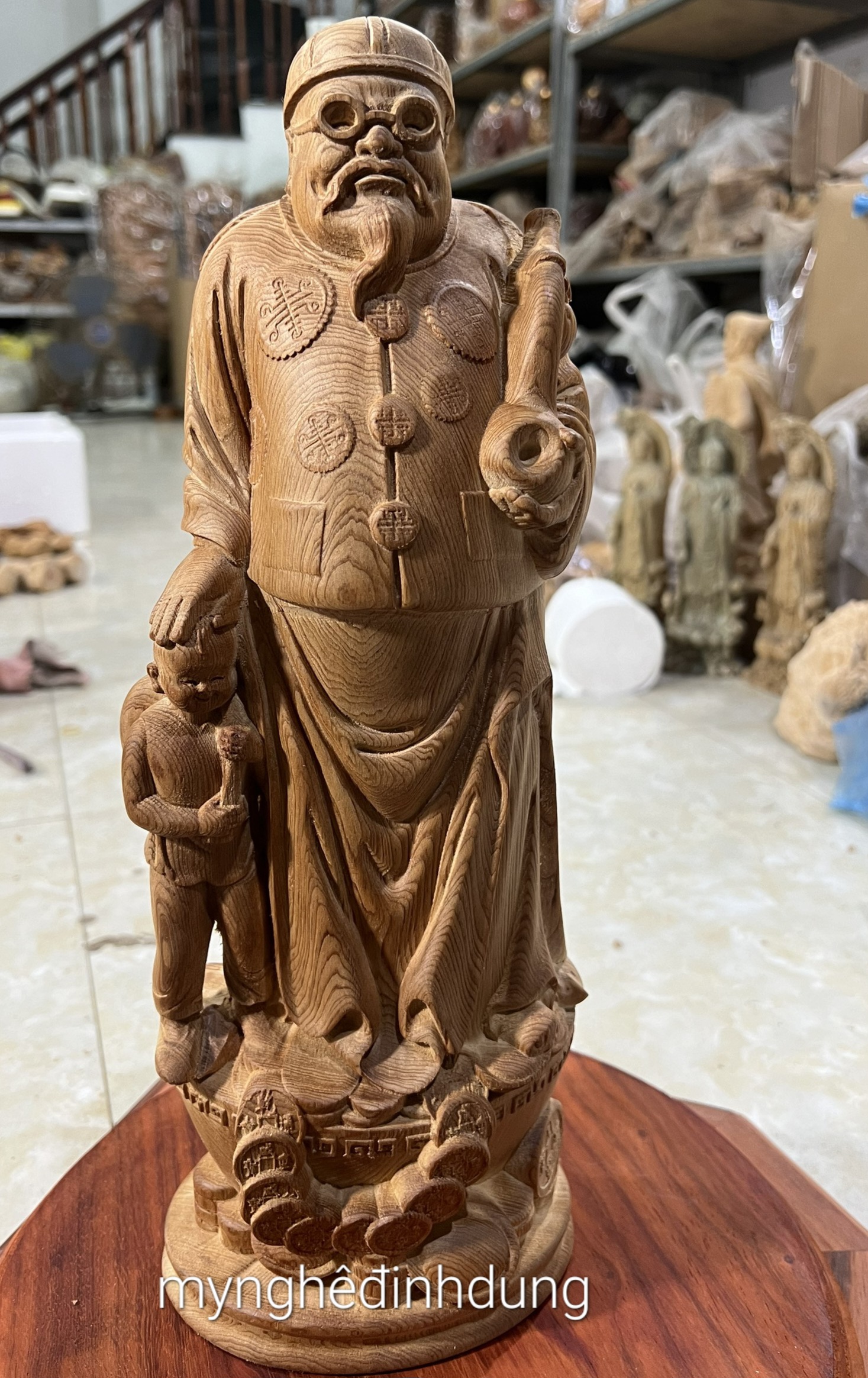_ Tượng được chạm khắc gọt tỉa vô cùng tỉ mỉ tinh xảo kỳ công Đi hầu hết tất mọi chi tiết góc ngách nội dung hoa văn của tượng đều được gọt tỉa chỉnh sửa sắc nét hoàn toàn bằng tay thủ công .Tượng chế tác làm và hoàn thiện từ những người thợ giàu kinh nghiệm cũng như tay nghề cao trong làng nghề truyền thố