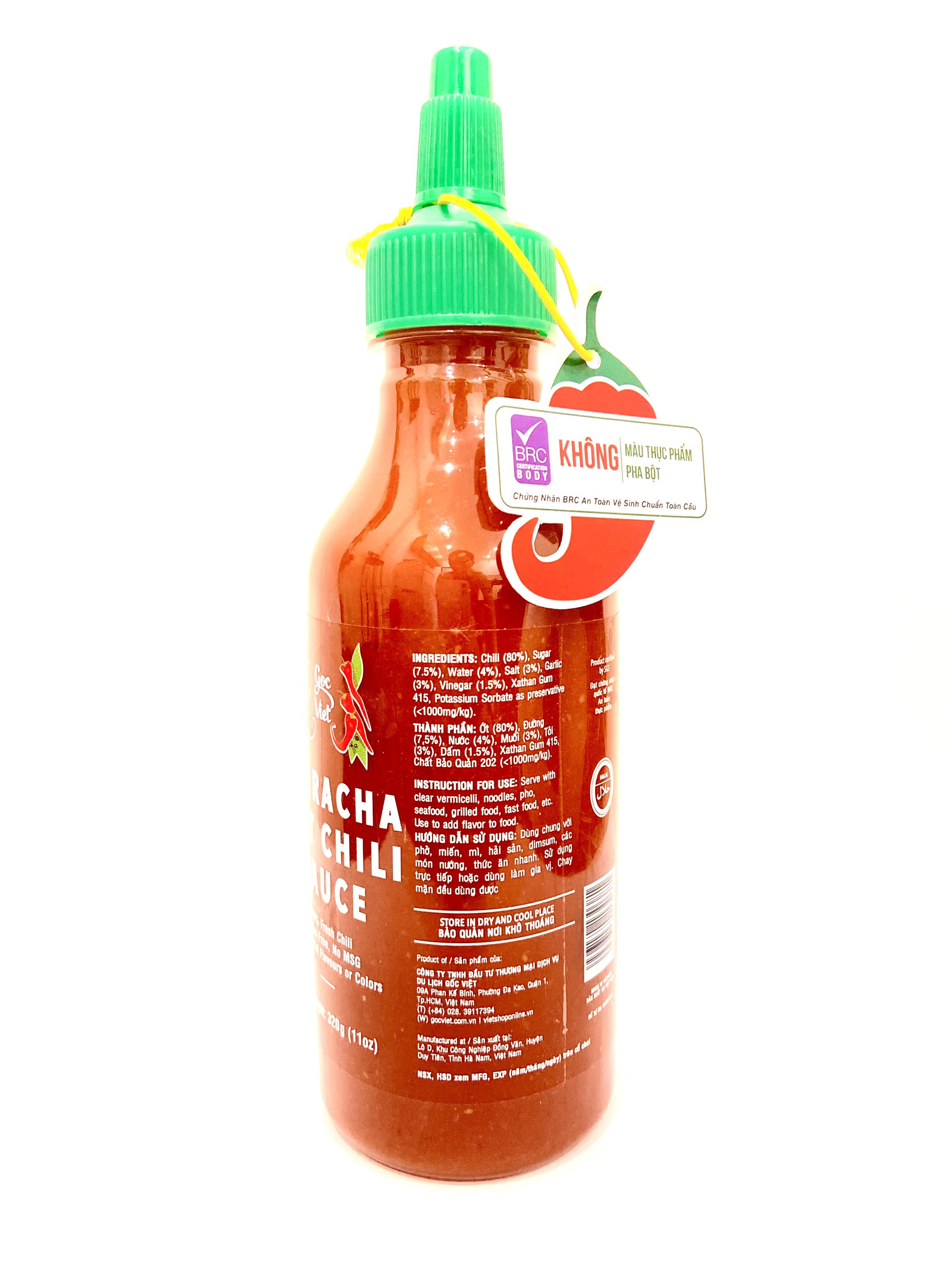 Ớt (80%), Đường (7,5%), Nước (4%), Muối (3%), Tỏi (3%), Dấm (1,5%), Xathan gum 415, Chất bảo quản 202 (<1000mg/kg)