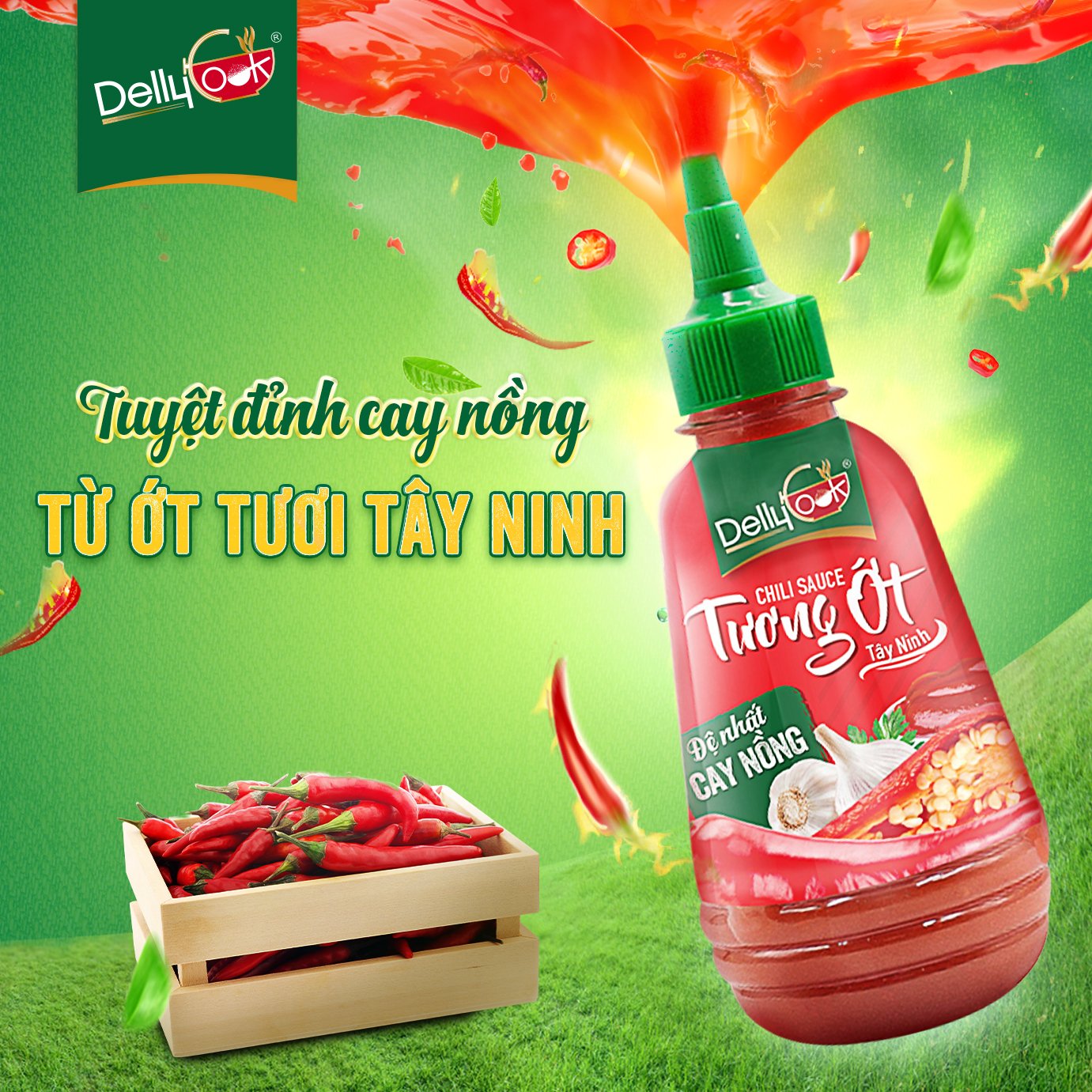 Tương ớt DellyCook là sự kết hợp đặc biệt của trái ớt Tây Ninh cùng với các loại gia vị chọn lọc mang đến vị cay bùng nổ ngay từ lần thử đầu tiên.