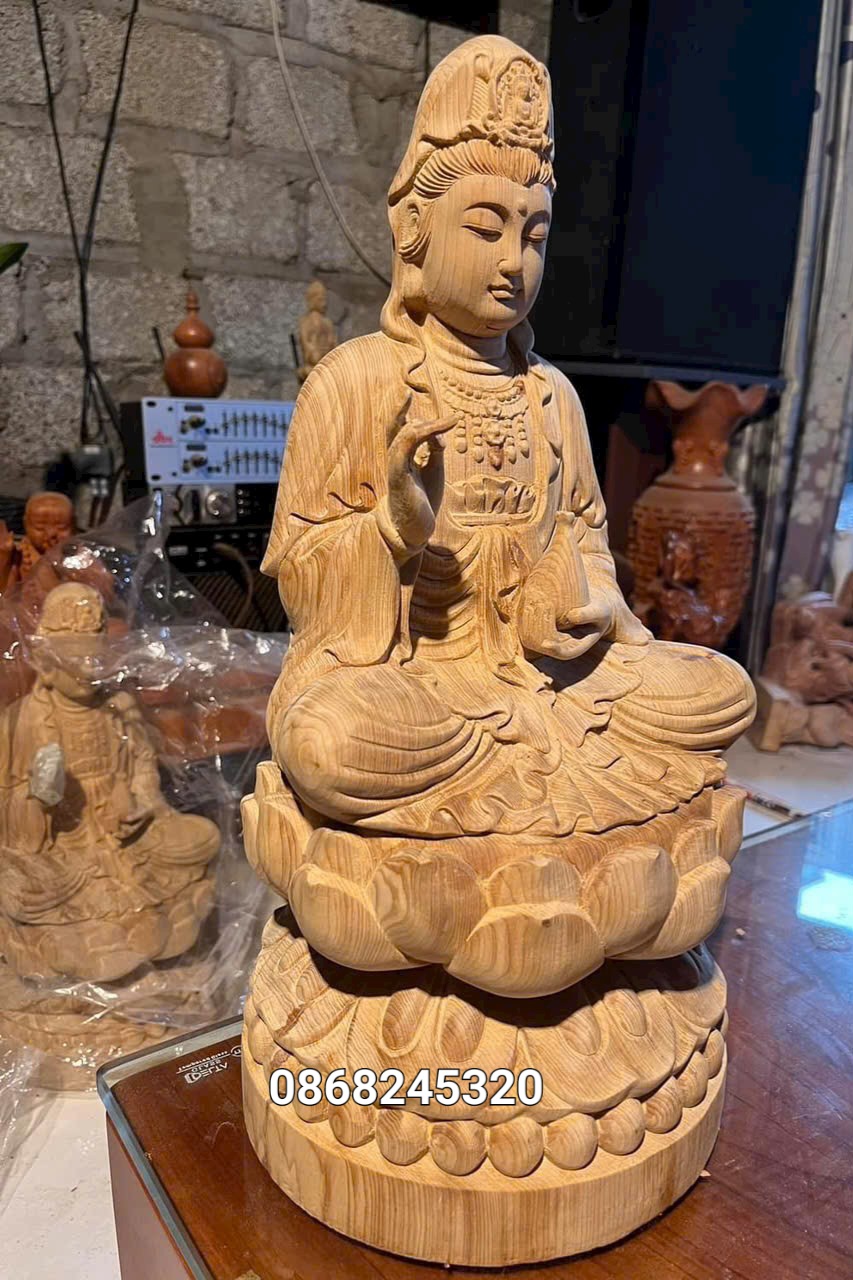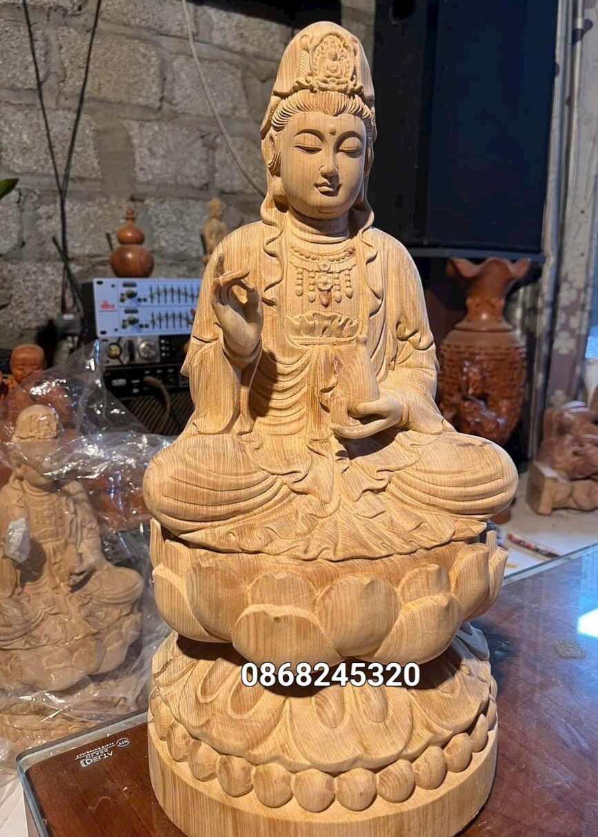 _ Tượng phật bà mẹ quan âm bồ tát được làm bằng chất liệu gỗ ngọc am liền khối tự nhiên 100%