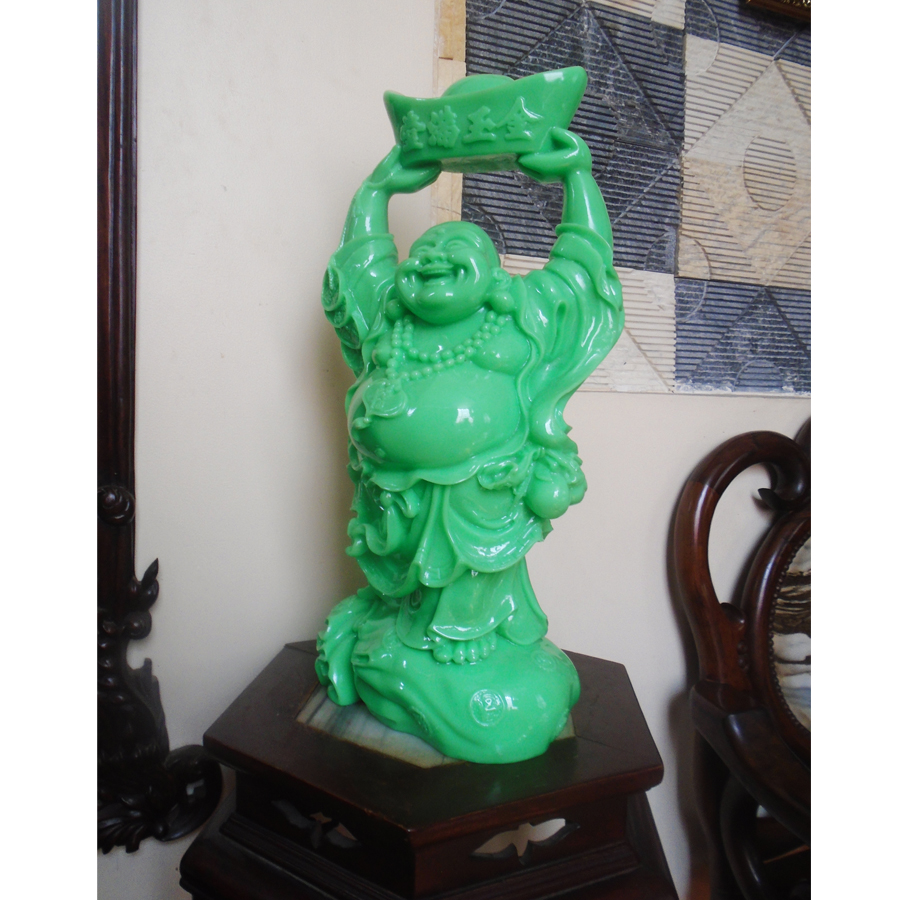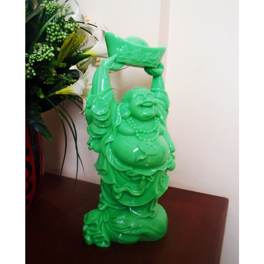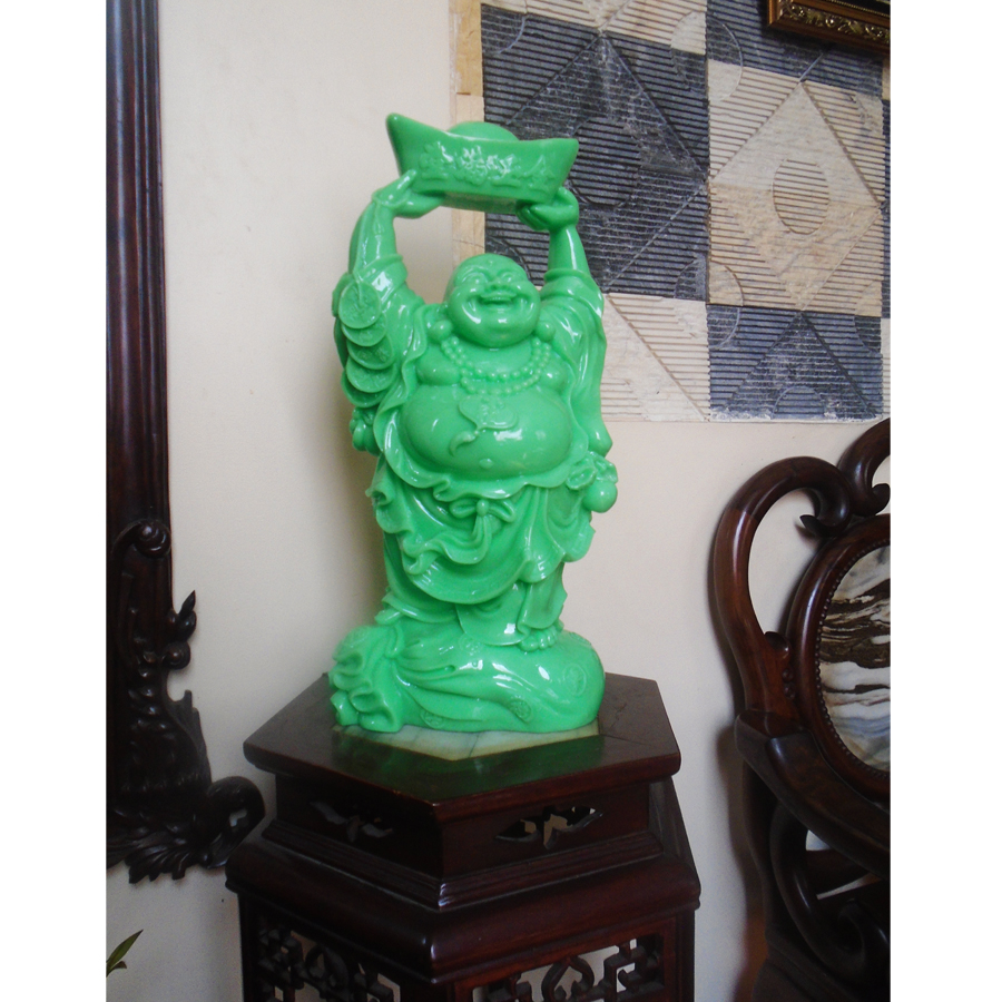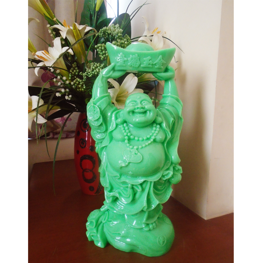 Tượng Phật Di Lặc với chiếc bụng to, điển hình cho việc có thể giữ được hơi do đó sẽ dễ dàng cười to và lâu hơn so với người bình thường. Chiếc bụng to cũng tượng trưng cho việc có thể “nuốt” những chuyện xui xẻo và chuyển hóa nó thành vận may, mang đến tiền tài cho gia chủ.