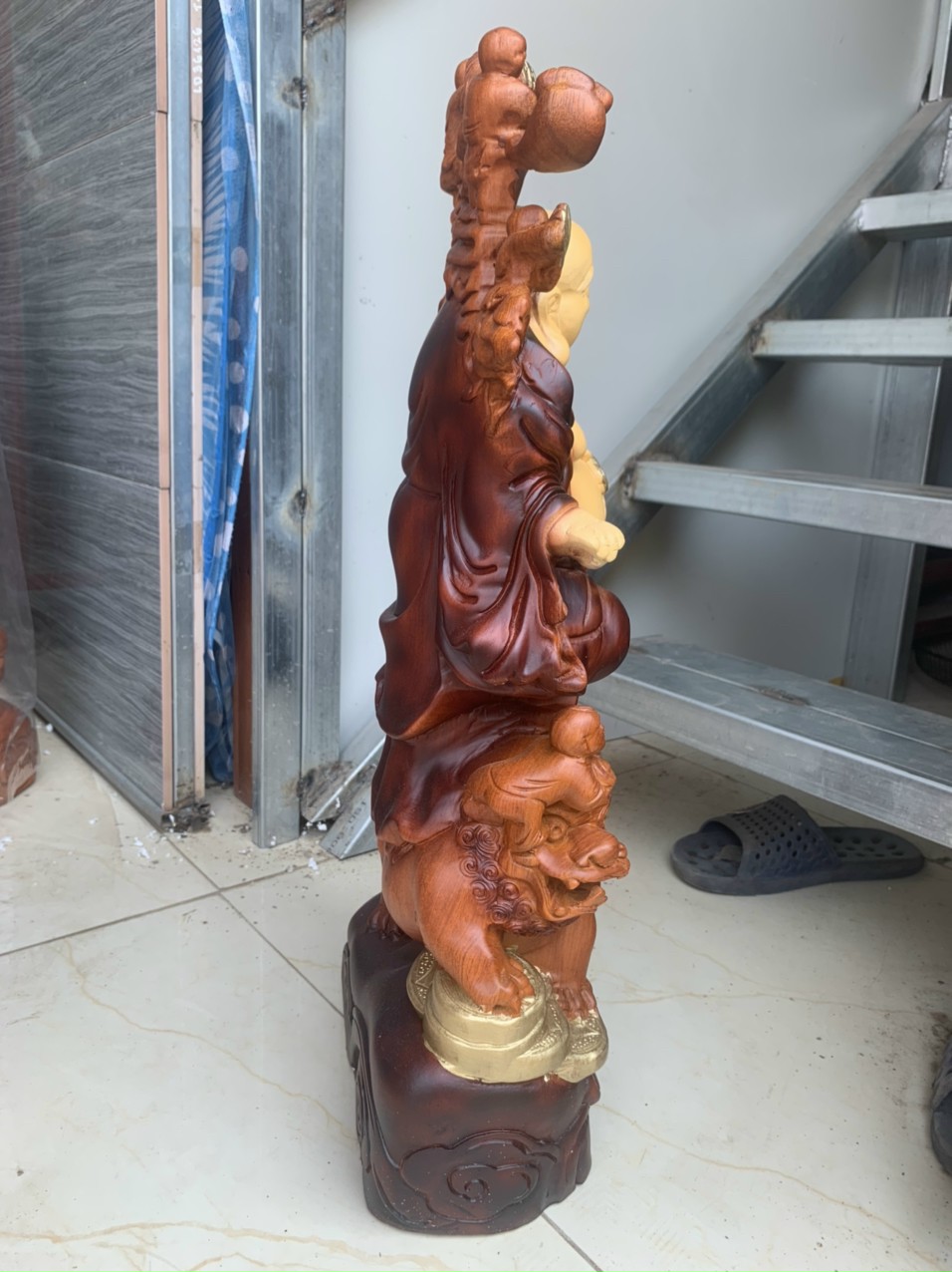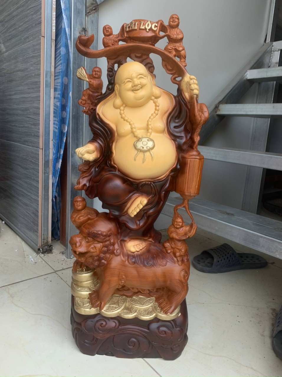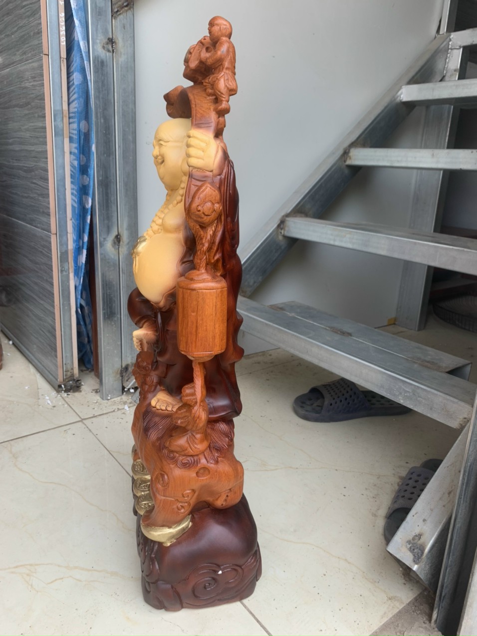 _ Tượng phật di lặc chúc phúc được làm bằng chất liệu gỗ hương đá tự nhiên 100%Tượng được tô mầu giả cổ