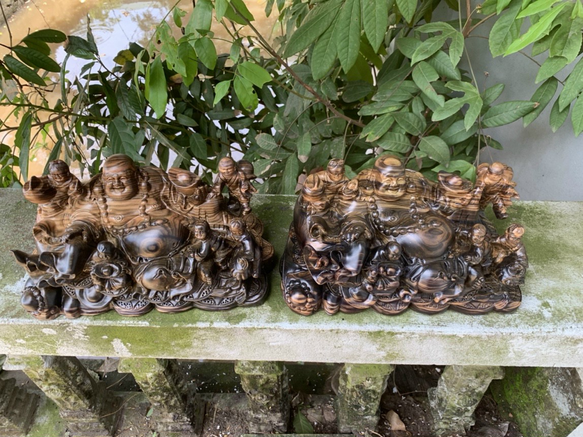 _ Tượng phật di lặc ngũ phúc được làm bằng chất liệu gỗ mun hoa tự nhiên 100%