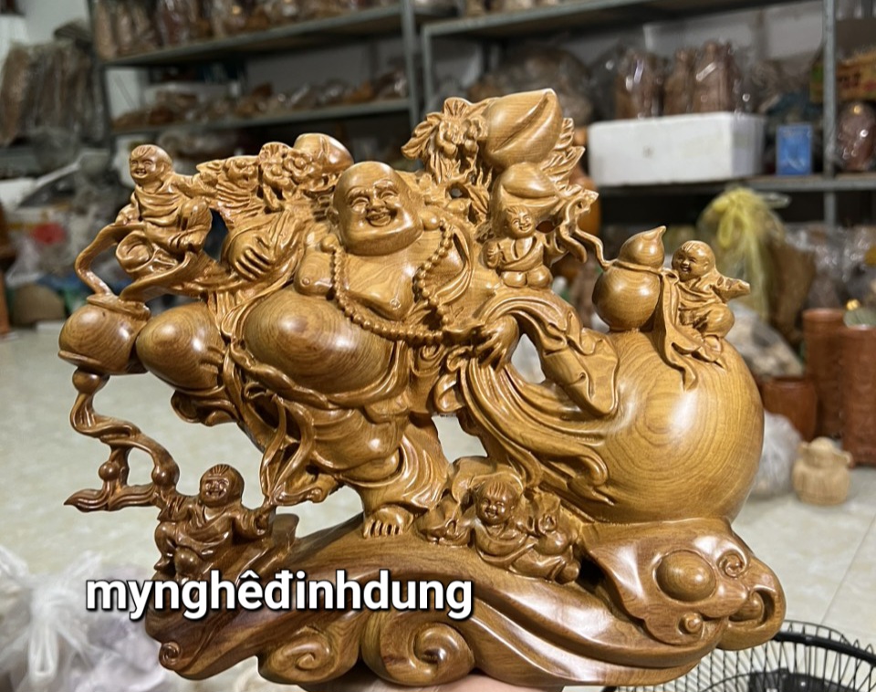 _ Tượng phật di lặc ngũ phúc được làm bằng chất liệu gỗ bách xanh liền khối tự nhiên 100%