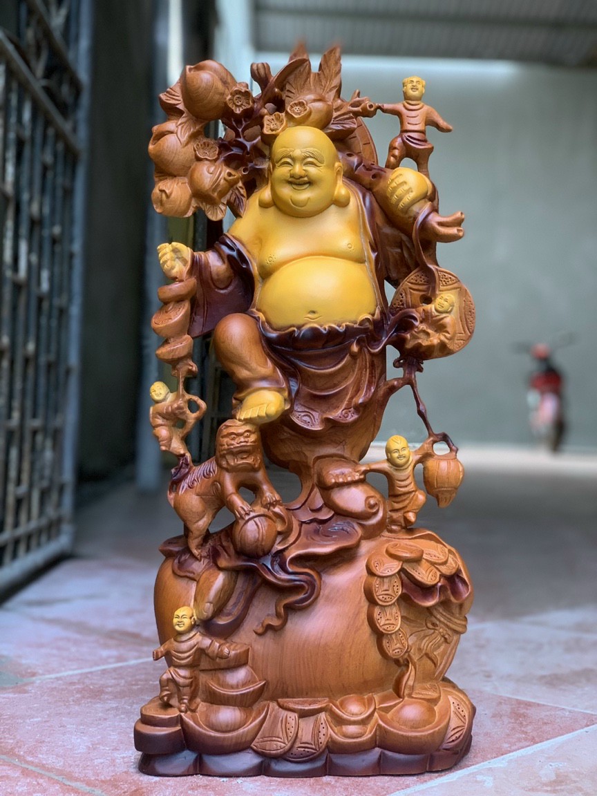 _ Tượng phật di lặc ngũ phúc được trạm khắc tỉ mỉ tinh sảo kỳ công .Đi hầu hết mọi chi tiết góc ngách nội dung hoa văn của tượng .Đều được ngọt tỉa chỉnh sửa hoàn toàn bằng tay thủ công .Từ những người thợ giàu kinh nghiệm cũng như tay nghề cao trong làng nghề truyền thống .Chính vì thế tượng phật di lặc ngũ phúc đã đáp ứng đầy đủ những tiêu trí ( Đẹp bền rẻ ) Thẩm mỹ nghệ thuật với chất lượng tuyệt vời