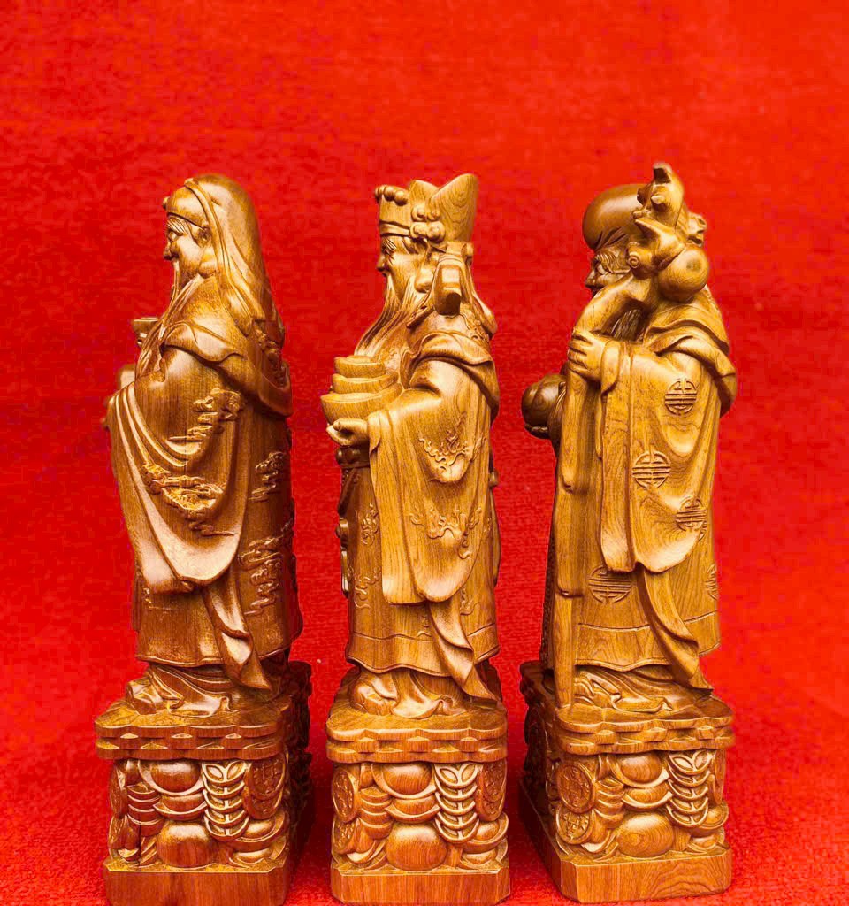 _ Bộ tượng Phật tam đã phúc lộc thọ được làm bằng chất liệu gỗ trắc bách xanh liền khối tự nhiên 100%