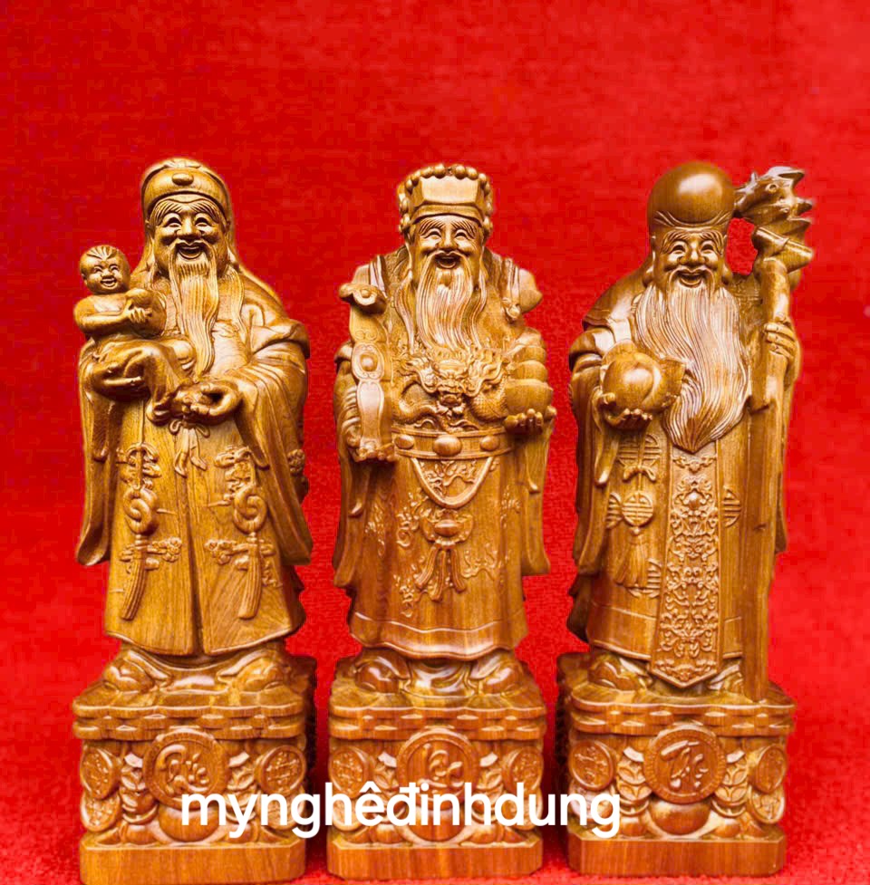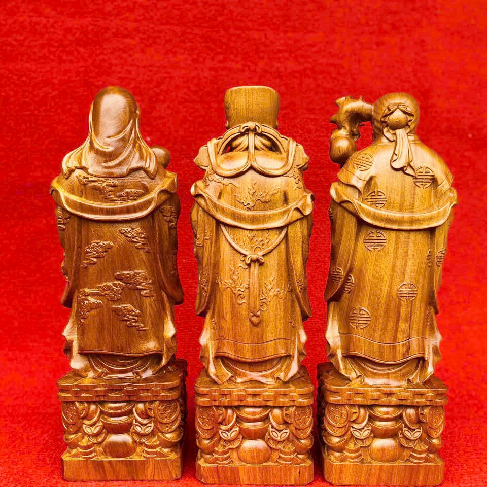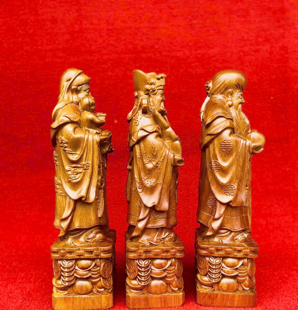 _ Bộ tượng tam đa phúc lộc thọ được chạm khắc vô cùng tỉ mỉ tinh xảo kỳ công, Đi hầu hết tất cả mọi chi tiết góc ngách nội dung hoa văn của Tượng đều được gọt tỉa chỉnh sửa sắc nét hoàn toàn bằng tay thủ công truyền thống.