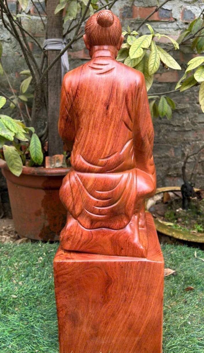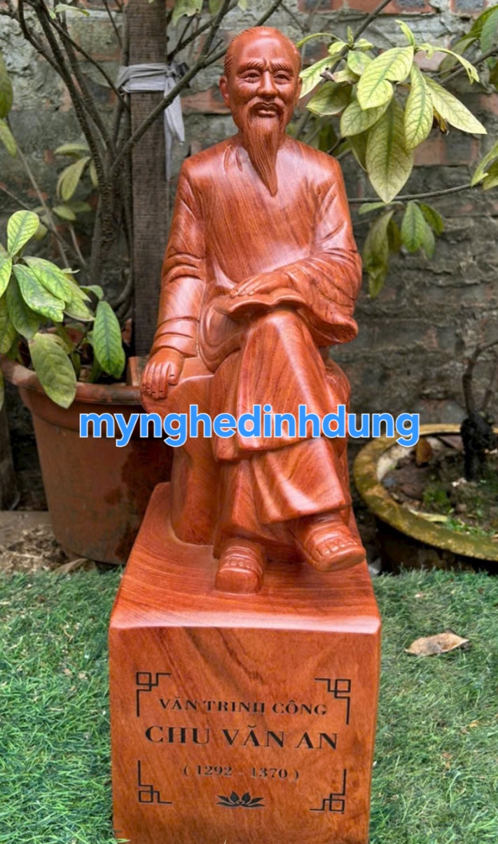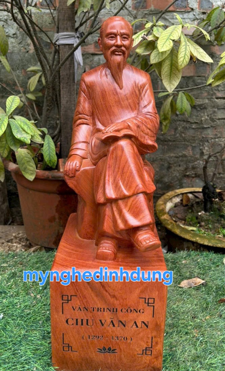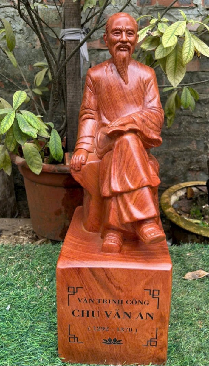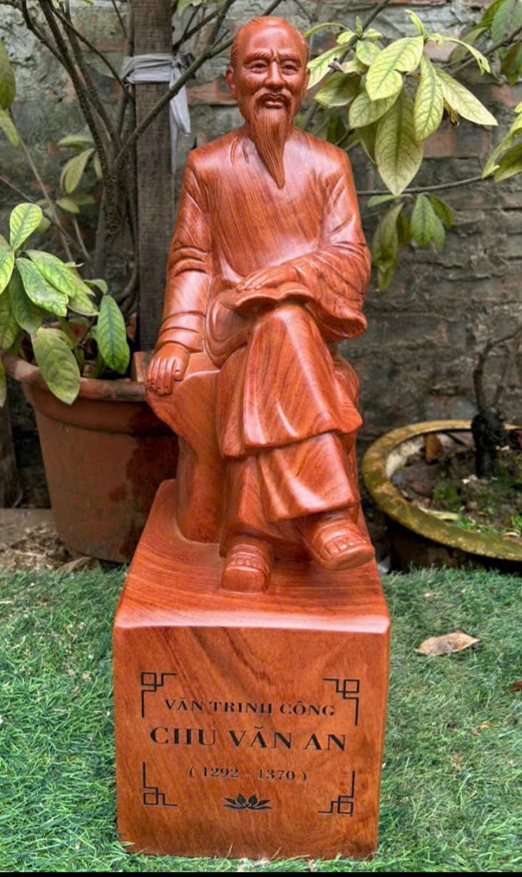 _ Tượng thầy chu văn an được làm bằng chất liệu gỗ hương đá liền khối tự nhiên 100%