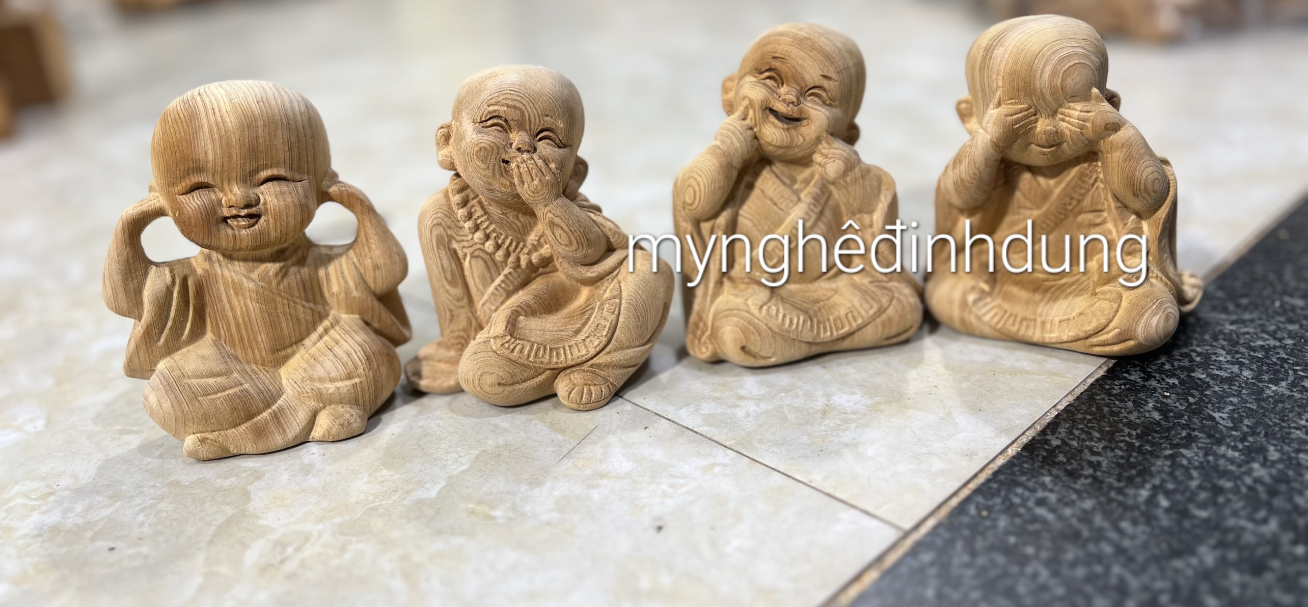 _ Bộ tượng tứ không được làm bằng chất liệu gỗ ngọc am liền khối tự nhiên 100%