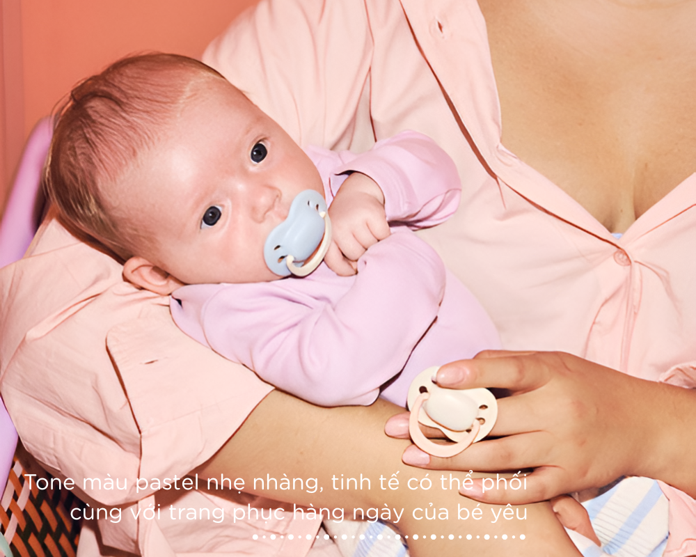 Thiết kế theo xu hướng: Ty ngậm Newborn phiên bản mới được thiết kế với kiểu dáng hiện đại, tinh giản và khoác lên mình bảng màu pastel ngọt ngào – nhẹ nhàng, tinh tế nhưng cũng đầy sang trọng và thời trang. Mẹ có thể dễ dàng phối cùng những bộ trang phục đáng yêu, để bé thêm phần sành điệu và dễ thương hơn trong từng khoảnh khắc.