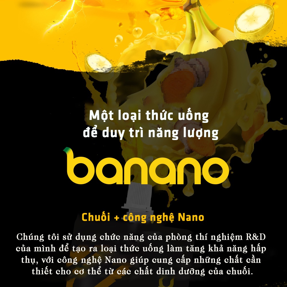 👉Công dụng từ chuối : - Chuối là loại trái cây luôn được các vận động viên ưu tiên sử dụng sau khi luyện tập mất sức, bởi vì trong chuối chứa hơn 80% chất được tạo thành từ carbohydrate, chúng là chất giúp chuyển hóa calo nhanh hơn bất kì loại trái cây nào. - Cung cấp năng lượng cho cơ thể nhanh hơn bất kì loại trái cây nào. -Chứa 33mg Magie, gấp dôi sữa, nó là chất xúc tác cho quá trình tổng hợp protein khi duy trì các chức năng của cơ và thần kinh bền vững. 👉Công dụng từ nghệ : -có tác dụng miễn dịch: Bằng cách kích hoạt enzyme chống oxy hóa giúp loại bỏ các cơ tự do trong cơ thể. -Ngăn chặn sự hình thành và phát triển của các tế bào ung thư. -Ngăn ngừa bệnh mất trí nhớ. - Tốt cho dạ dày, đường ruột. Nhưng so với việc bổ sung nghệ theo cách thông thường, cơ thể sẽ khó hấp thụ dưỡng chất nhanh và các chất dinh dưỡng cũng có thể bị đào thải ra ngoài. Chính vì vậy Banano đã sử dụng công nghệ xử lí Nano, giúp các phân tử đựa chia nhỏ ra và cơ thể dễ hấp thụ hơn.