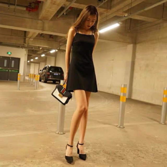 ❤THÔNG TIN SẢN PHẨM - Tên sản phẩm: V2_Váy đen 2 dây sexy phiên bản Hàn quốc - Kích thước: