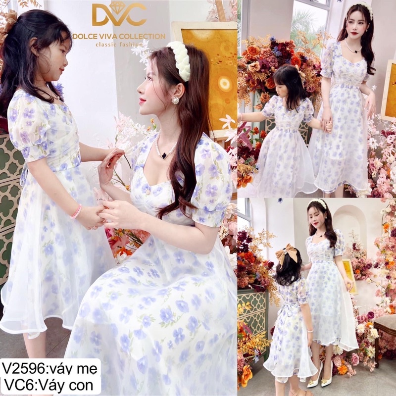 Giới thiệu V2596, VC6 Set váy mẹ bé hoa voan tím tiểu thư dáng xòe - (DVC&ACC) Dolce viva colection