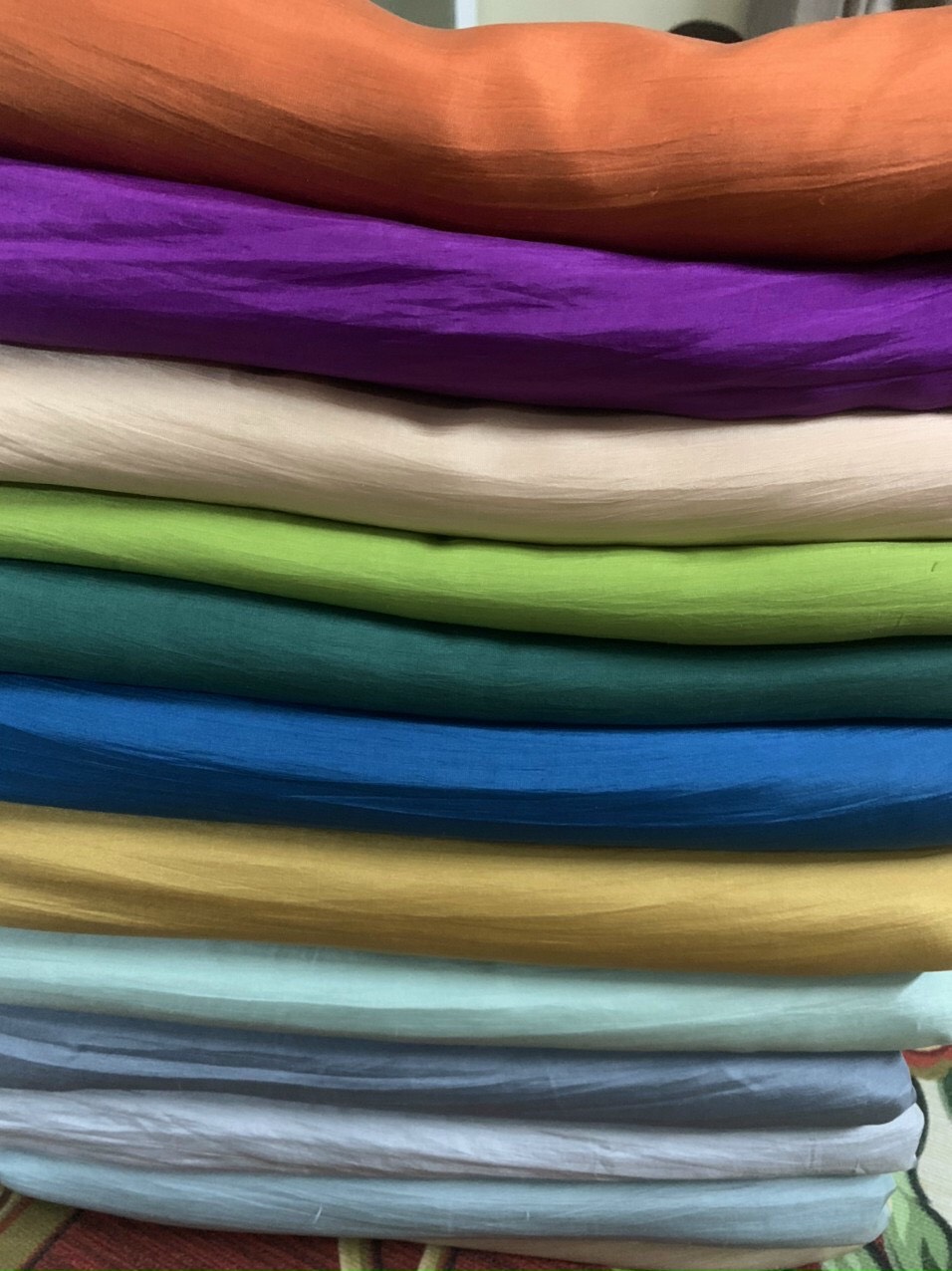 + Kỹ thuật dệt đơn giản nên mặt vải trơn, dù không soi dưới ánh sáng vẫn có thể nhìn thấy hình ảnh mờ mờ phía sau, nhưng mềm mại và bay.