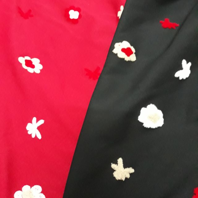 Vải thời trang, chất vải dầy, có co giãn nhẹ, họa tiết thêu nổi rất đẹp