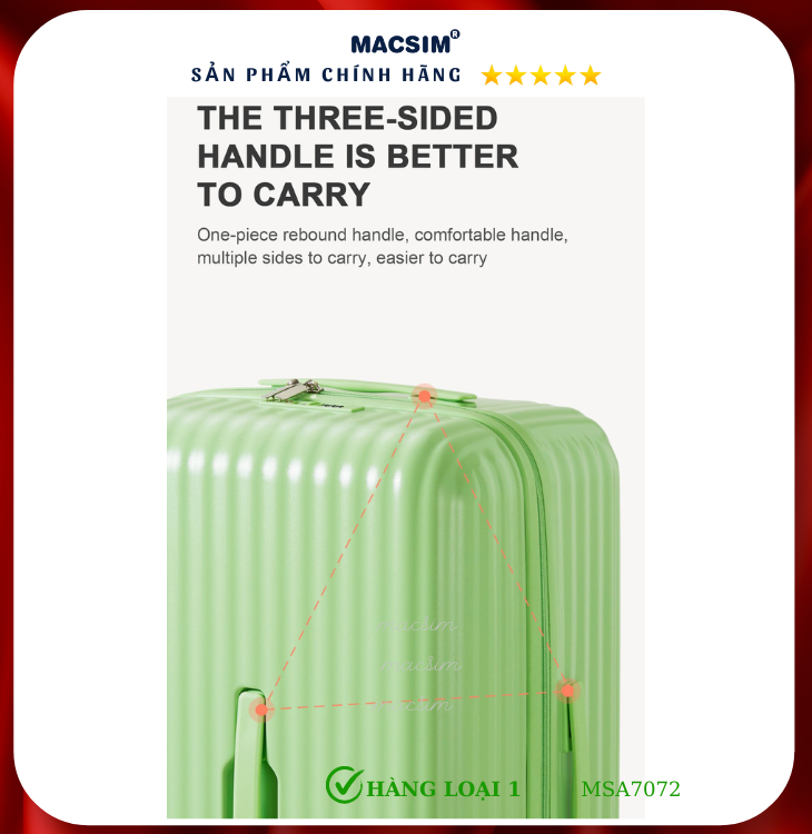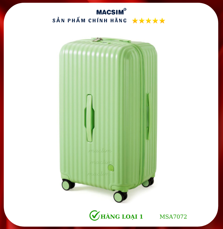 Vali cao cấp Macsim được làm từ chất liệu nhựa nguyên chất 3 lớp của hãng Bayer xuất xứ Đức. Tấm lót bên trong Poliester 150D xuất xứ Trung Quốc được REACH kiểm nghiệm và phê duyệt, bánh xe 360 độ hãng SJ của Mỹ; Khóa kéo thương hiệu YKK Nhật Bản, Khóa TSA hãng YIE Hồng Công. Tạo nên 1 sản phẩm đẹp, bền, chắc chắn tạo dấu ấn phong cách thời trang cá nhân của bạn trên mọi cuộc hành trình.