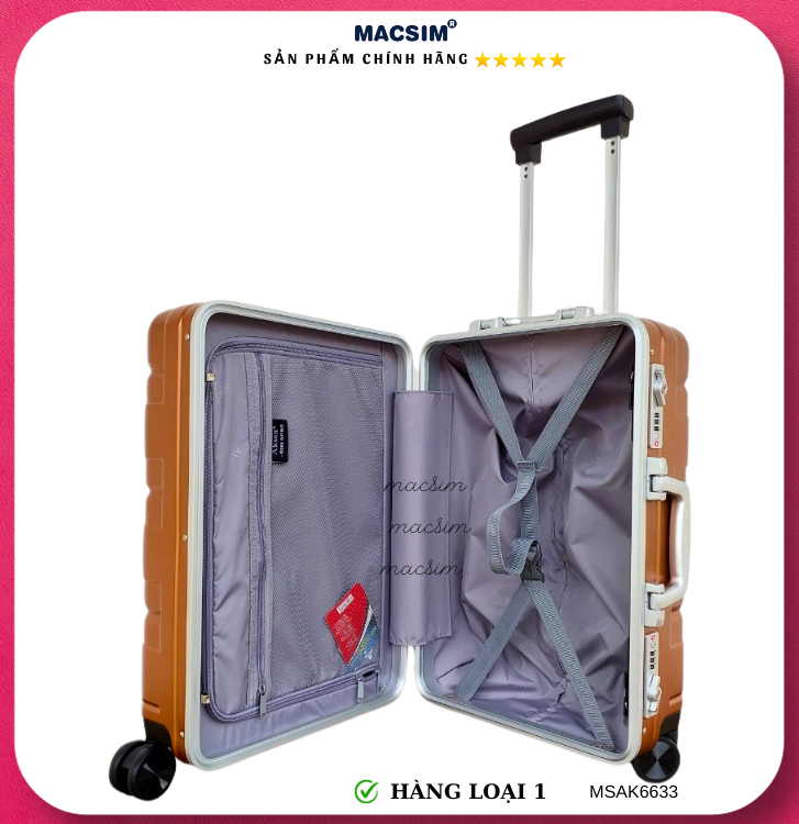 • Khung vali bằng nhôm cứng cáp chống rỉ sét tích hợp khóa khung hiện đại.